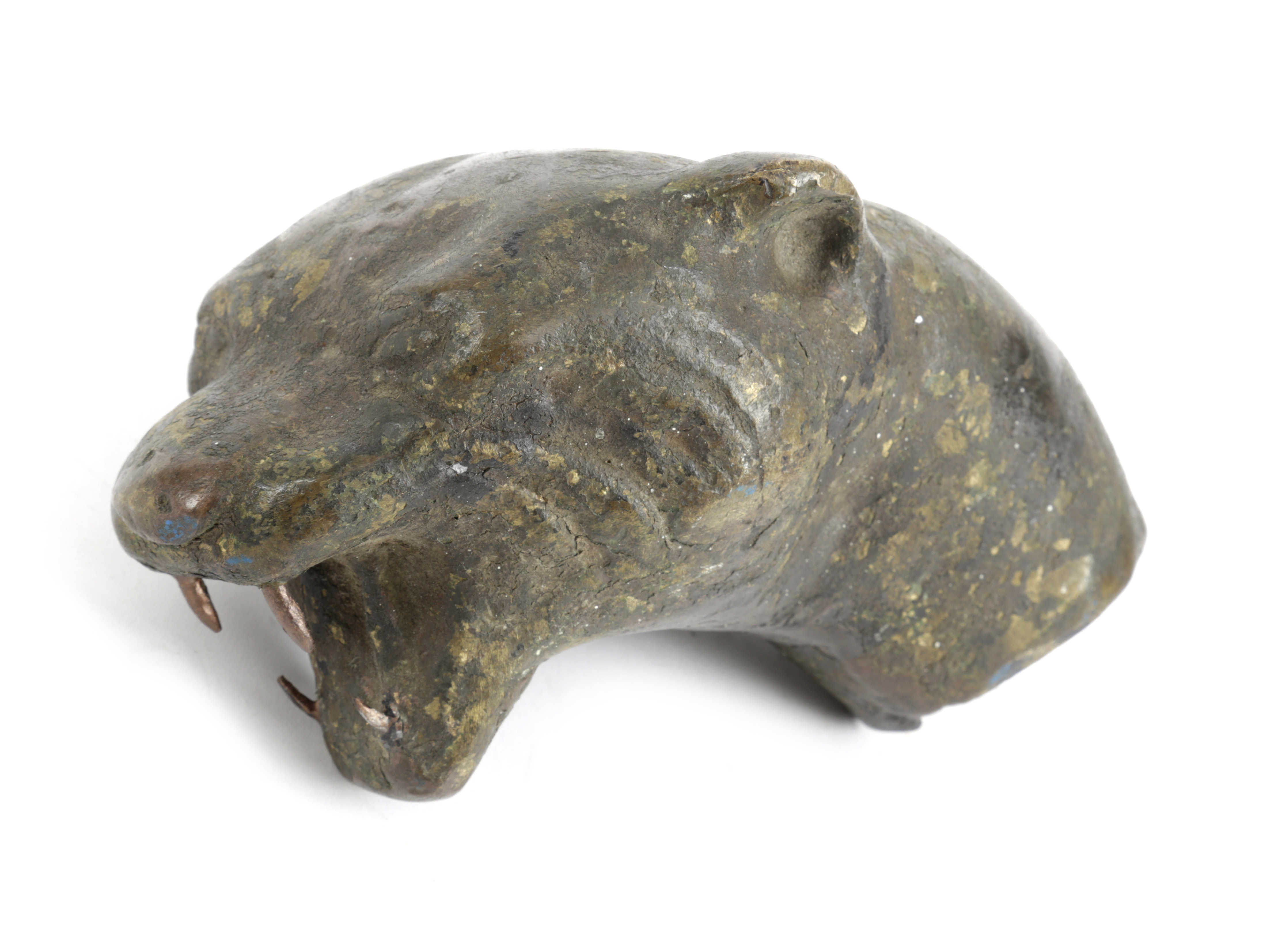 It is possible that this tiger's head took inspiration from the Tipu Sultan's Throne that was surmounted by gold and gem mounted tiger's head.