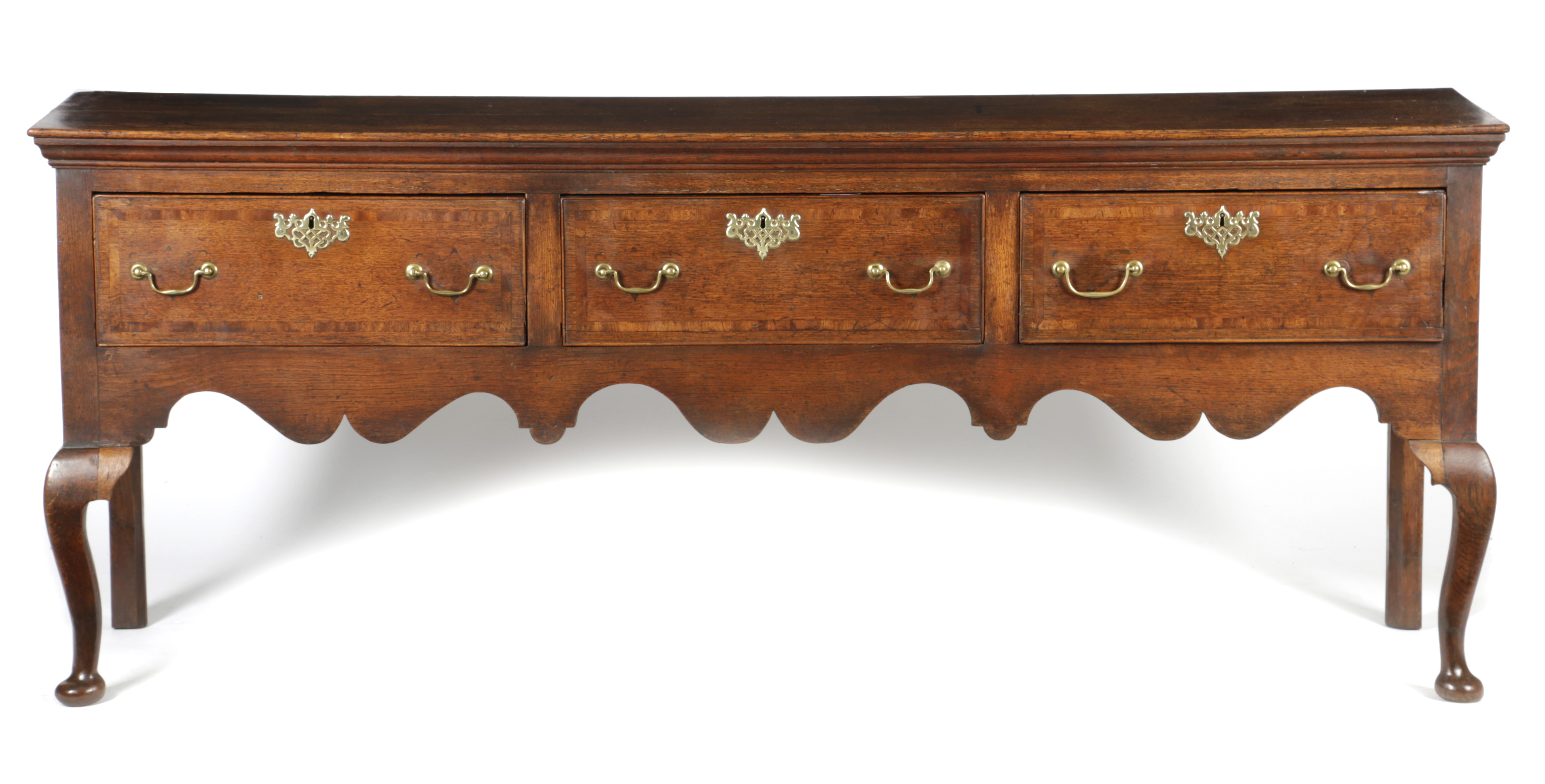 A GEORGE III OAK AND FRUITWOOD LOW DRESSER