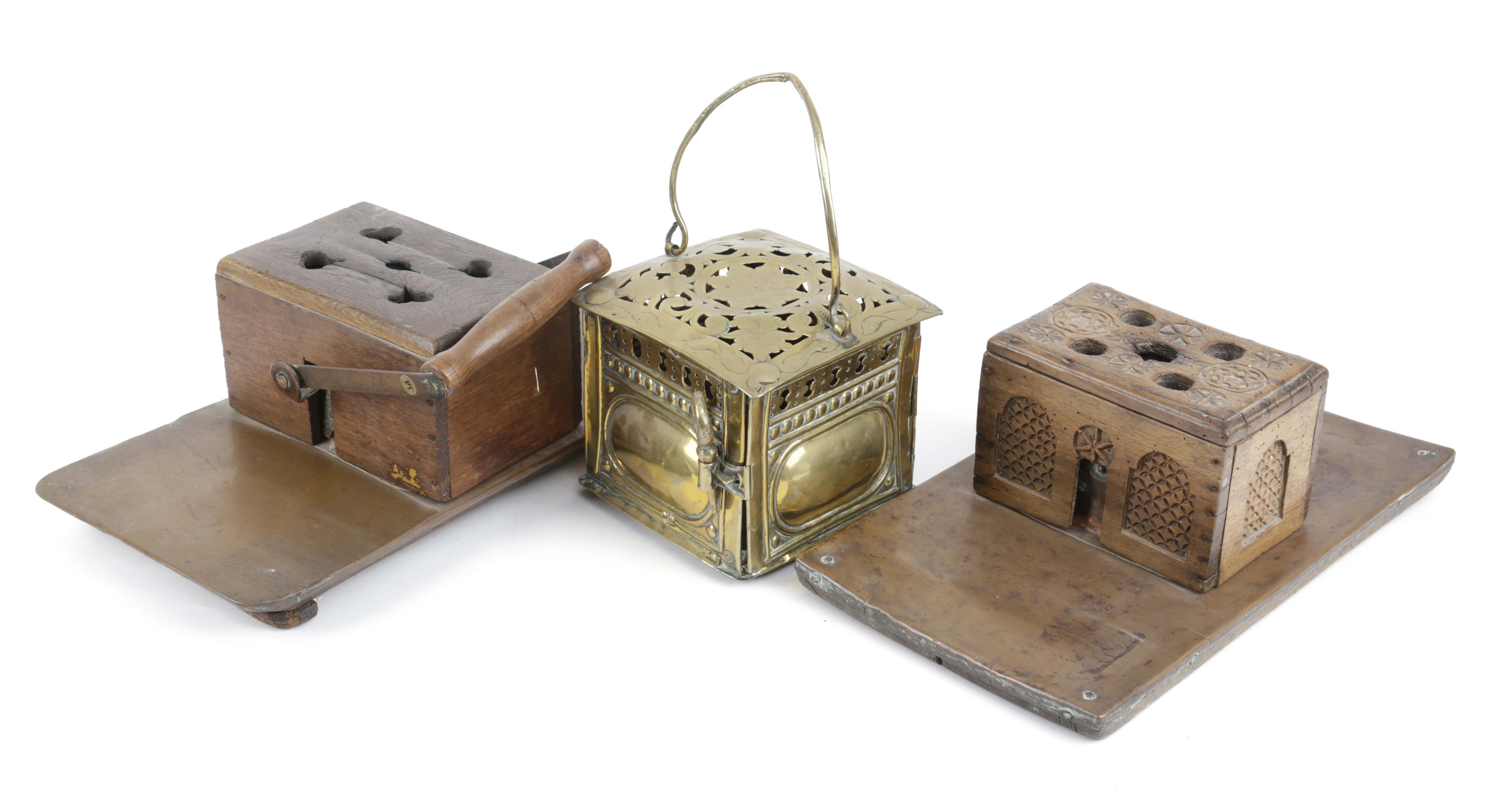 together with two Dutch copper, oak and fruitwood voetstoefies (3)