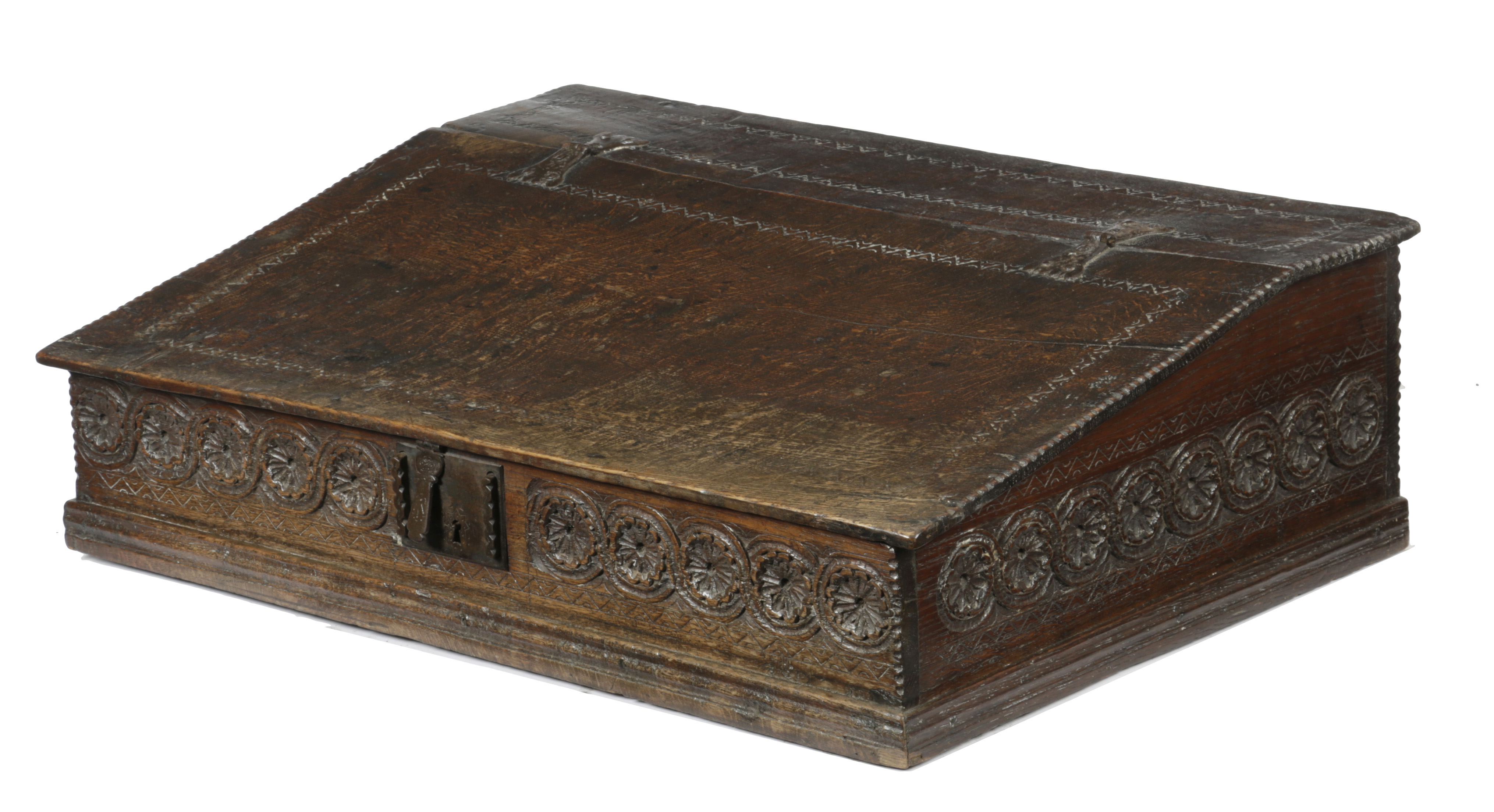 A JAMES I / CHARLES I OAK DESK BOX
