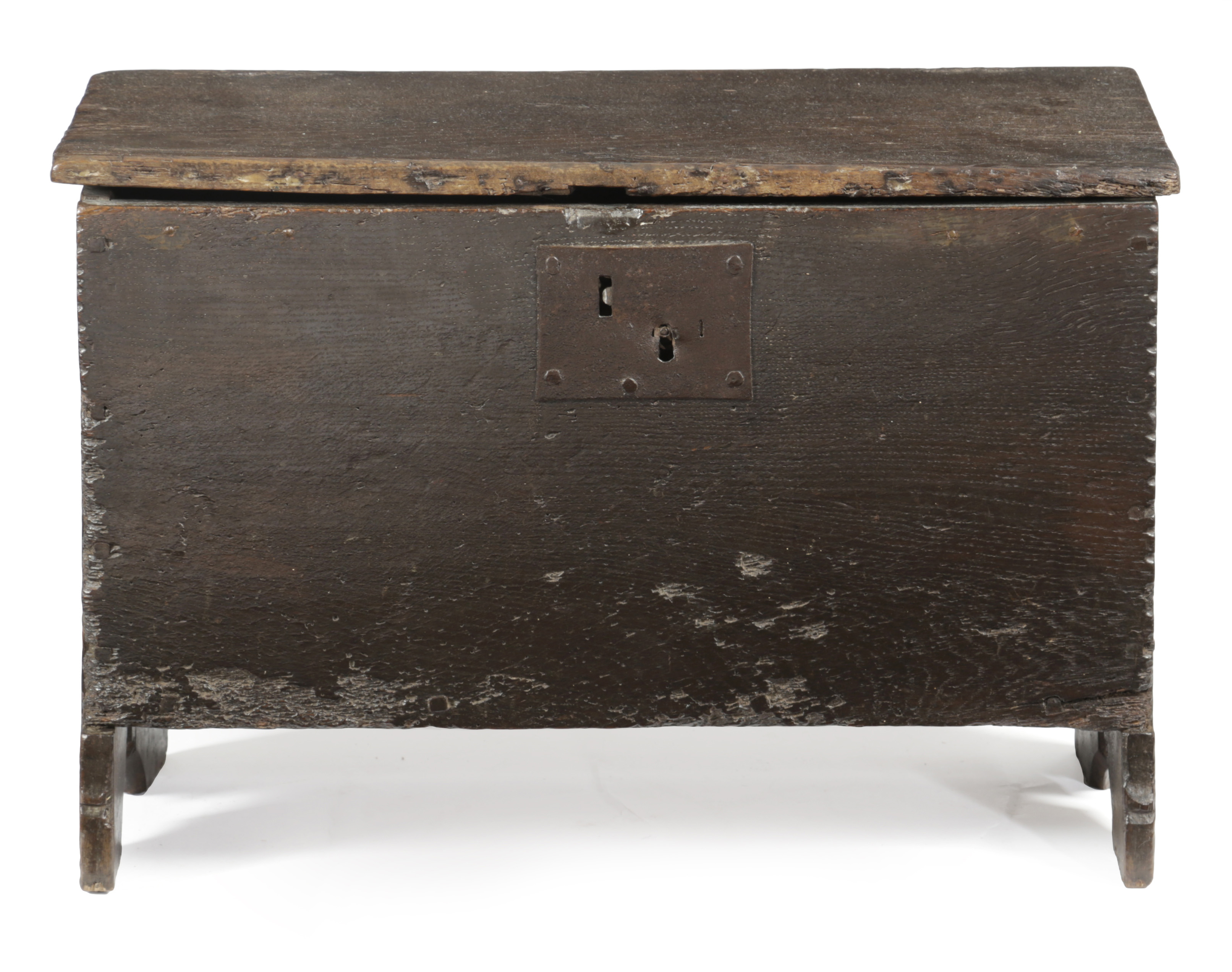 AN ELIZABETH I CHILD'S BOARDED OAK CHEST