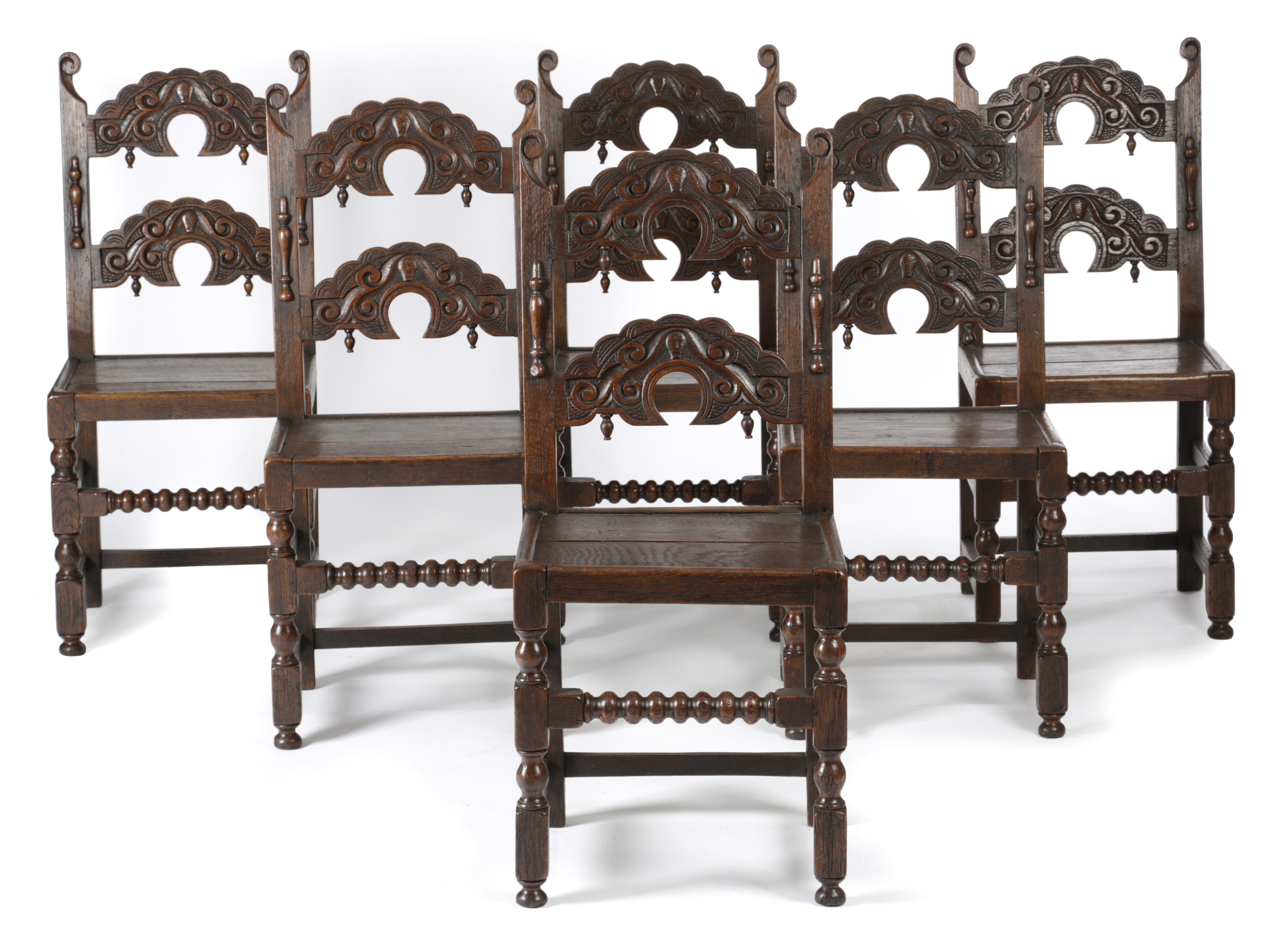 A SET OF SIX CHARLES II OAK BACKSTOOLS