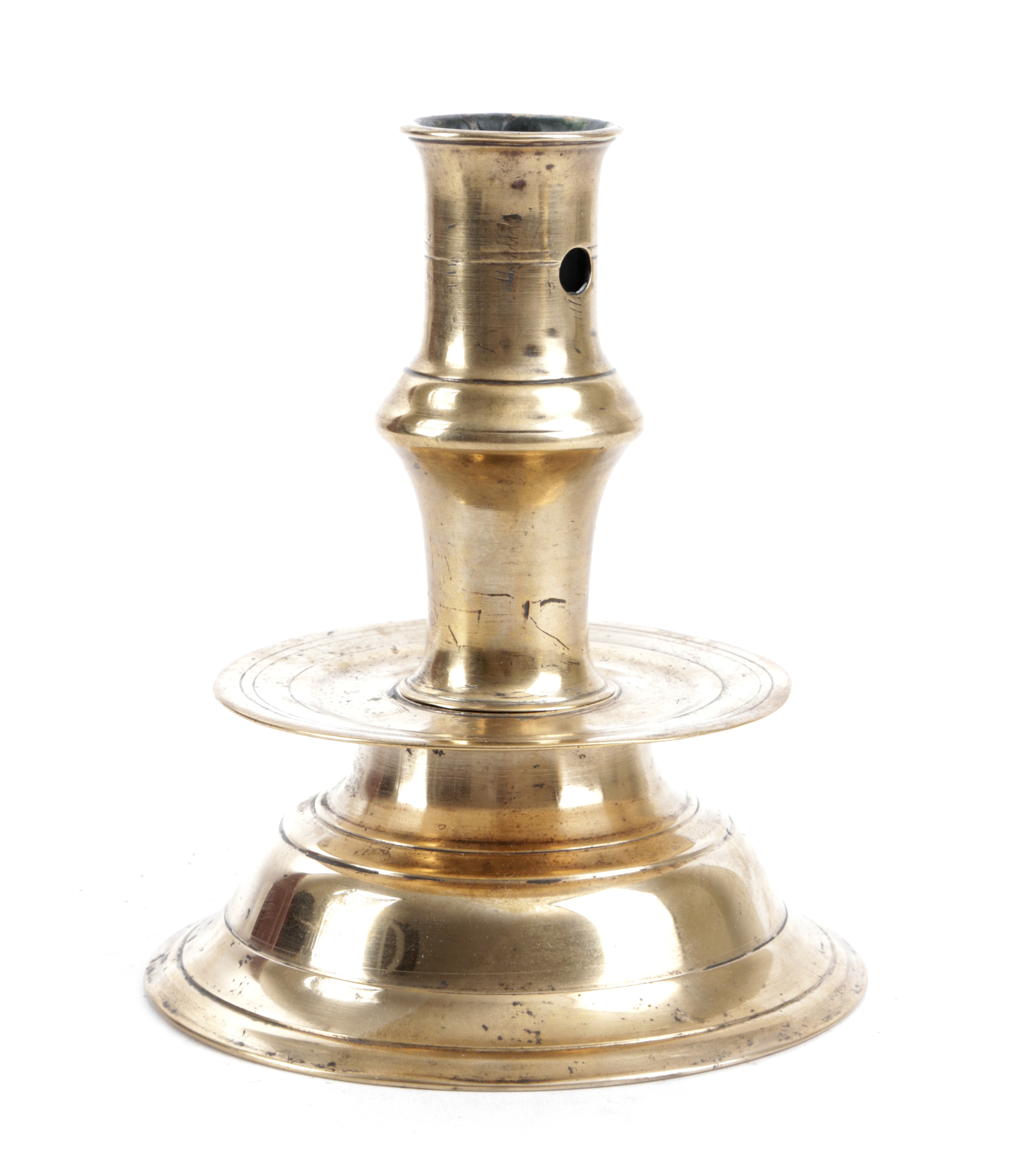 AN UNUSUAL FLEMISH BELL-METAL CANDLESTICK