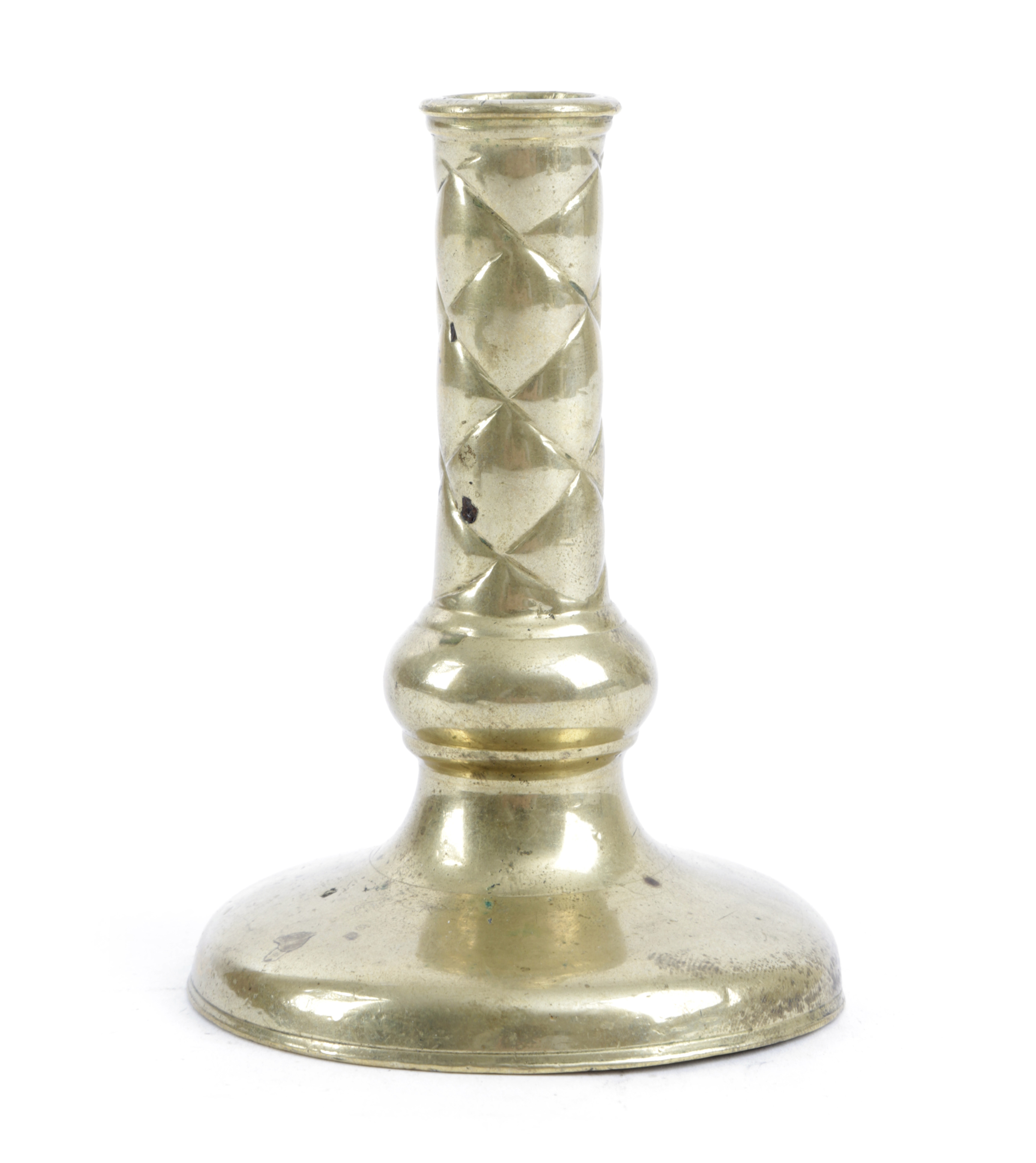 A RARE AND SMALL BALL KNOP BRASS CANDLESTICK