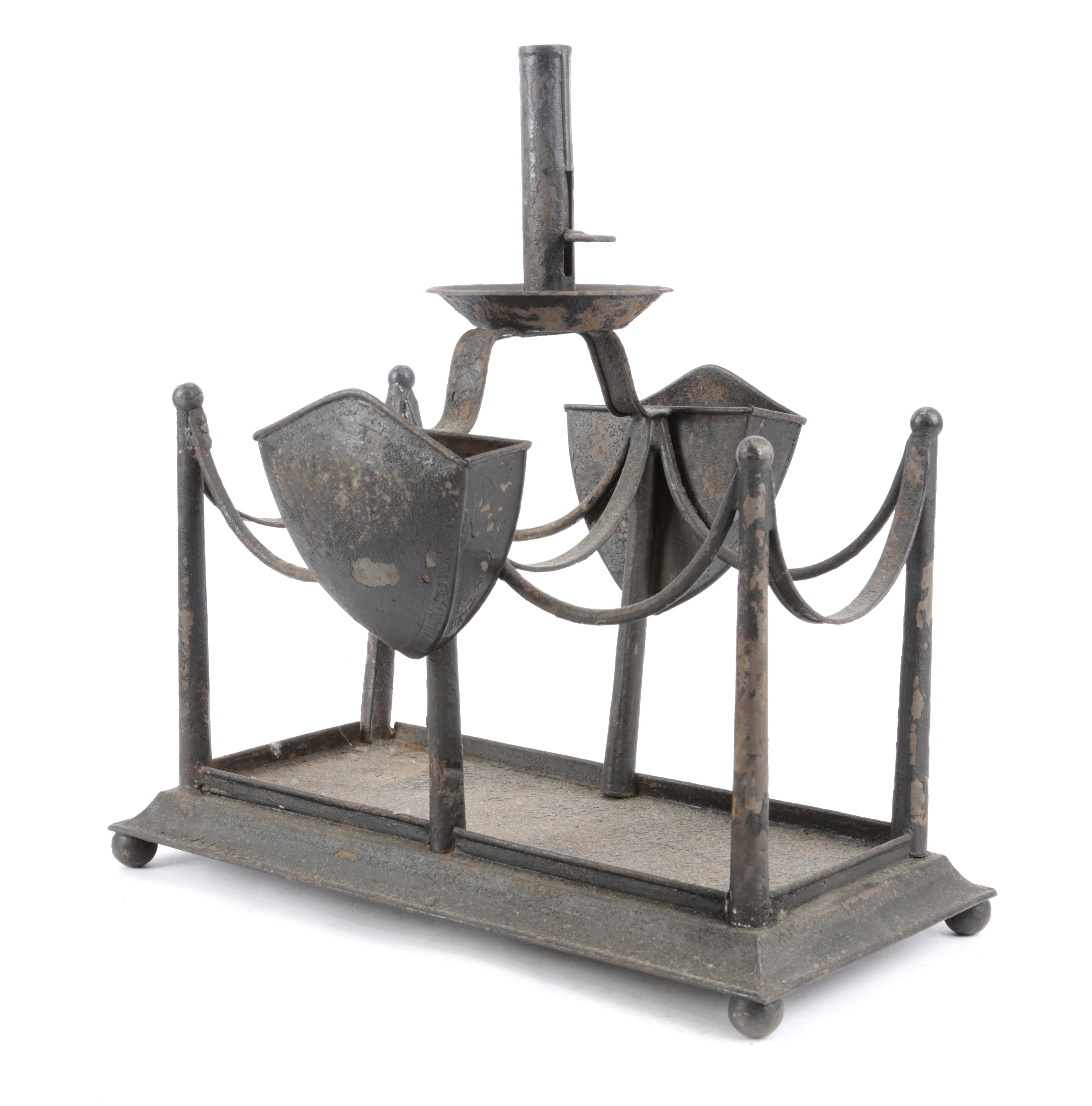 AN UNUSUAL VICTORIAN IRON 'BIDDING CANDLESTICK'
