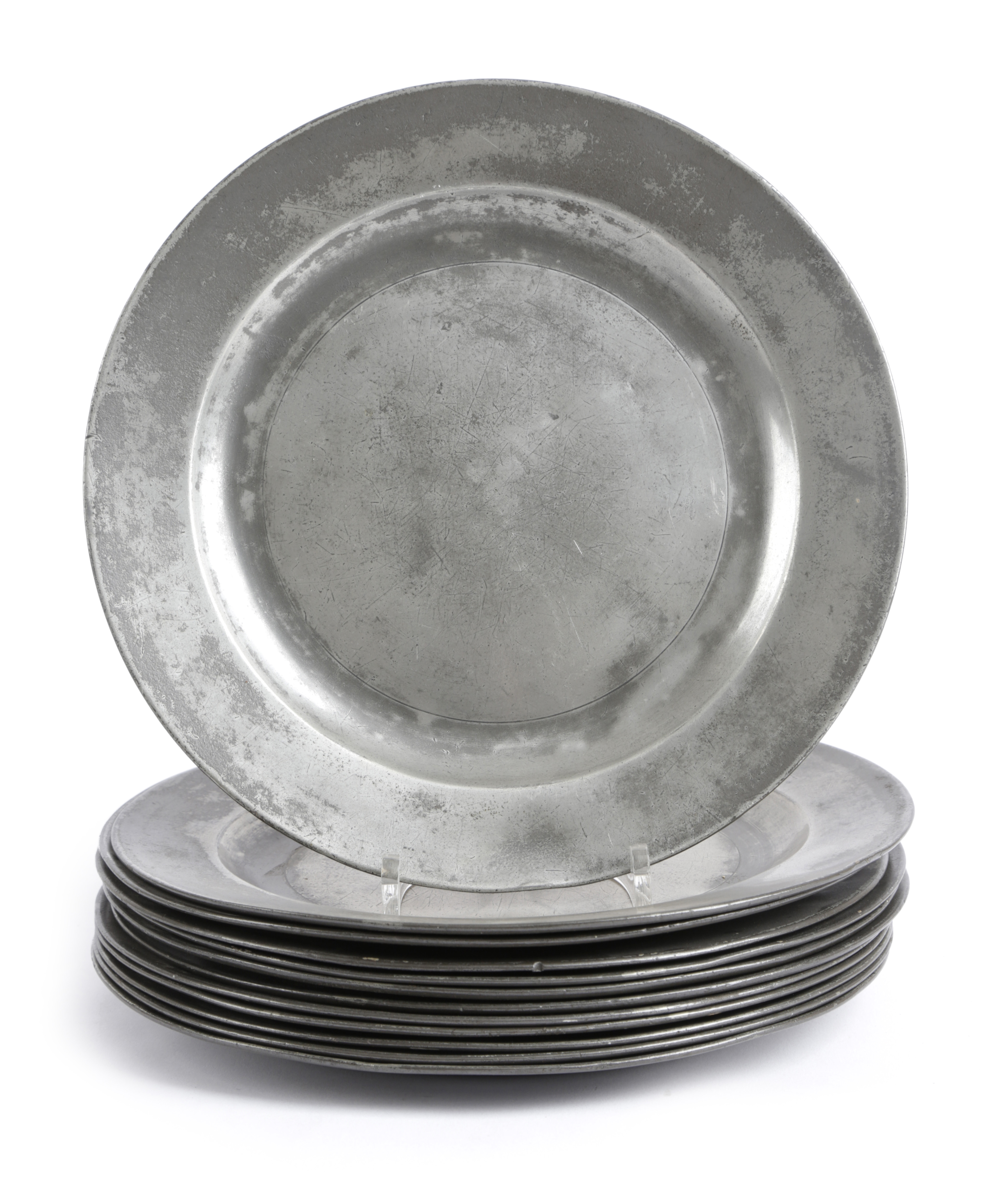 A SET OF TWELVE PEWTER PLATES
