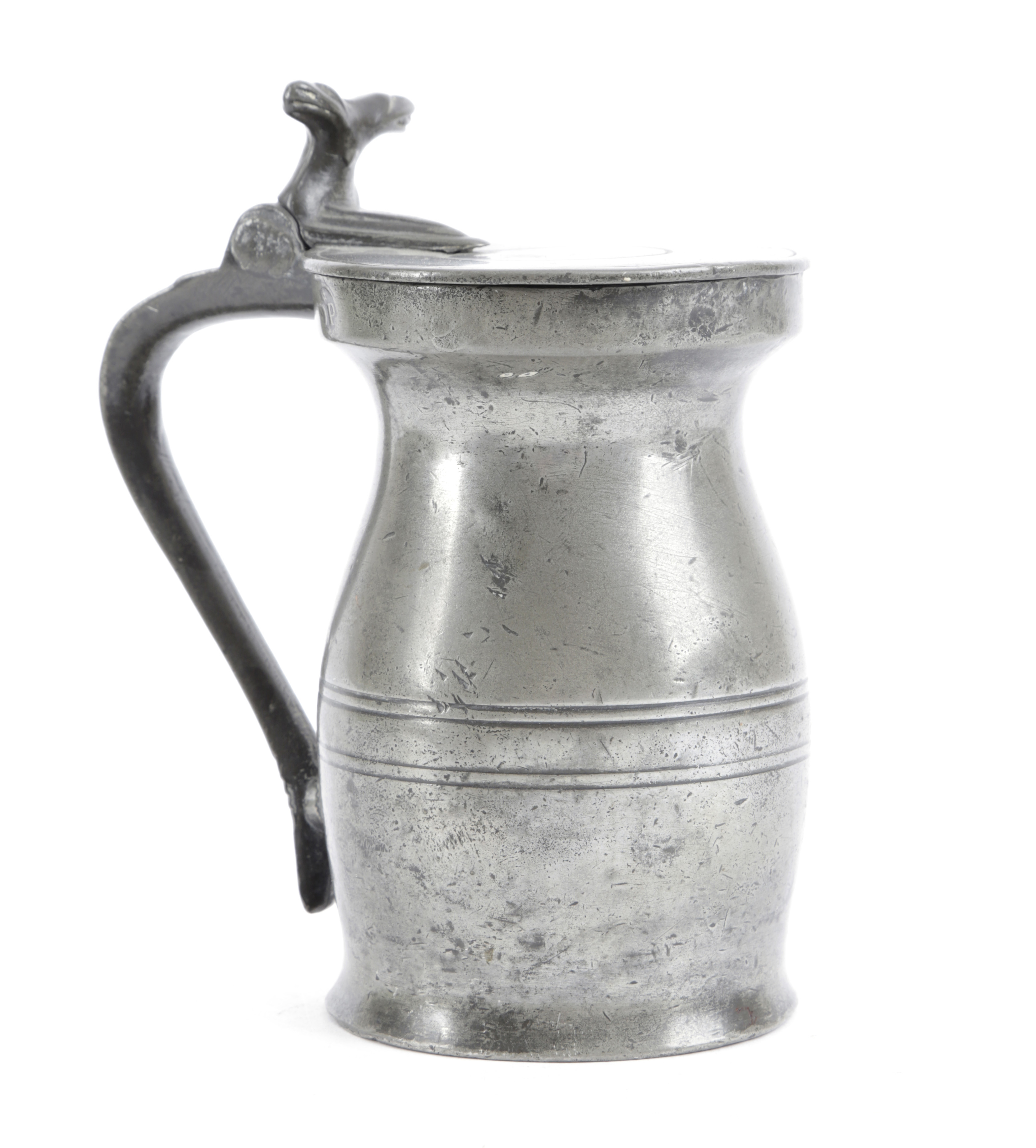 A GEORGE I / II PEWTER O.W.E.S PINT BUD BALUSTER MEASURE