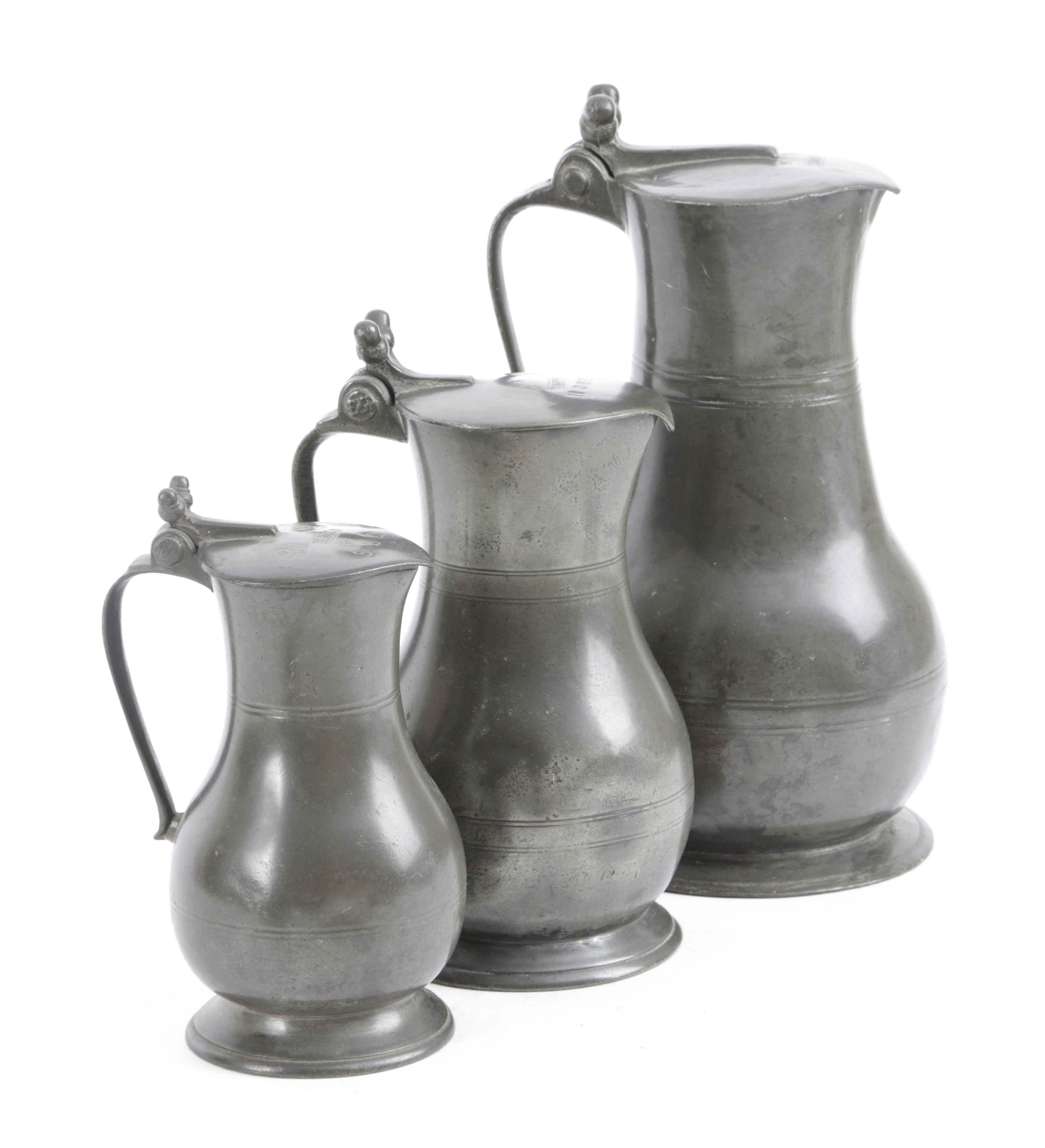 A GROUP OF THREE GEORGE III PEWTER MEASURES