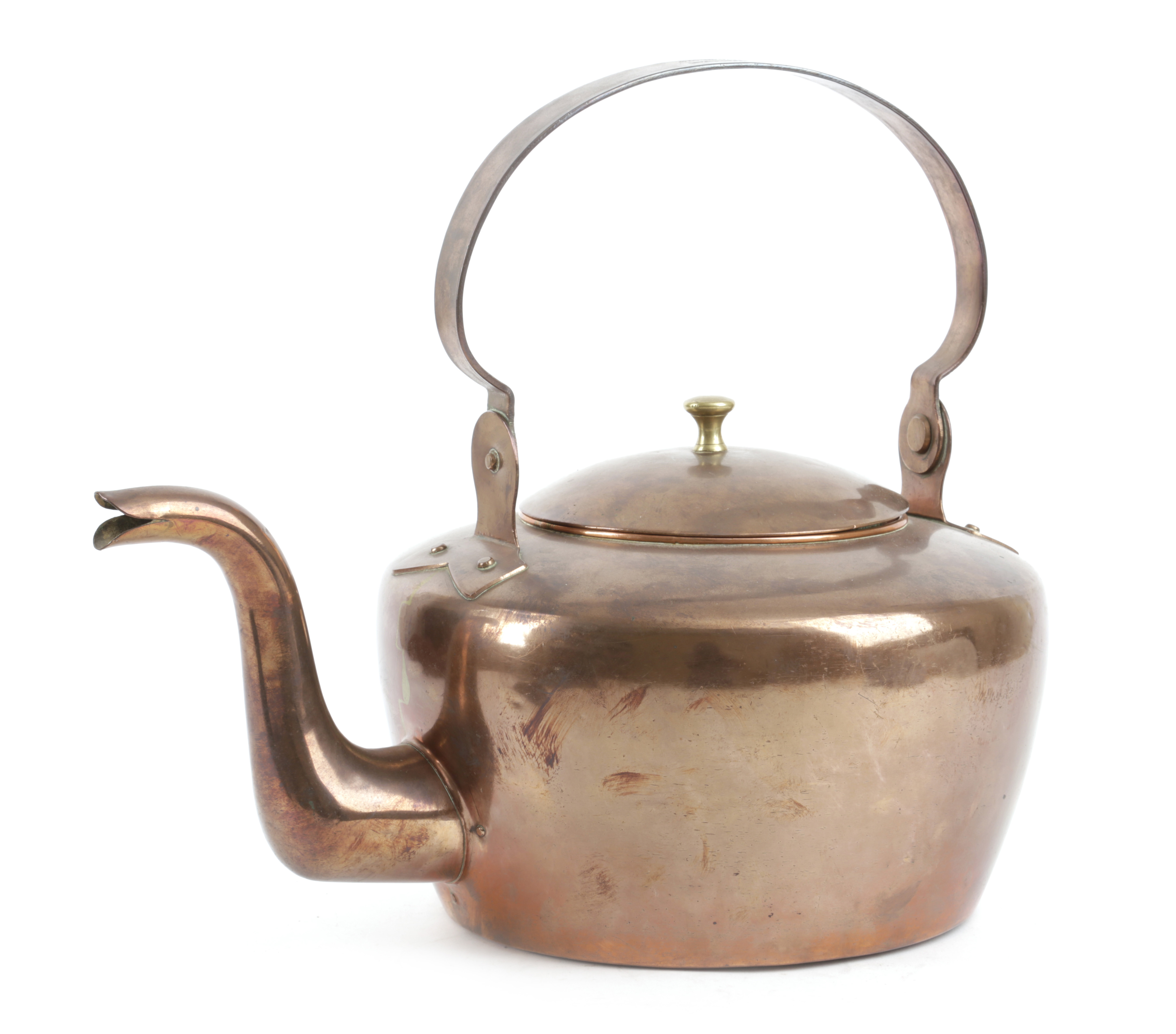 A LARGE AMERICAN COPPER KETTLE