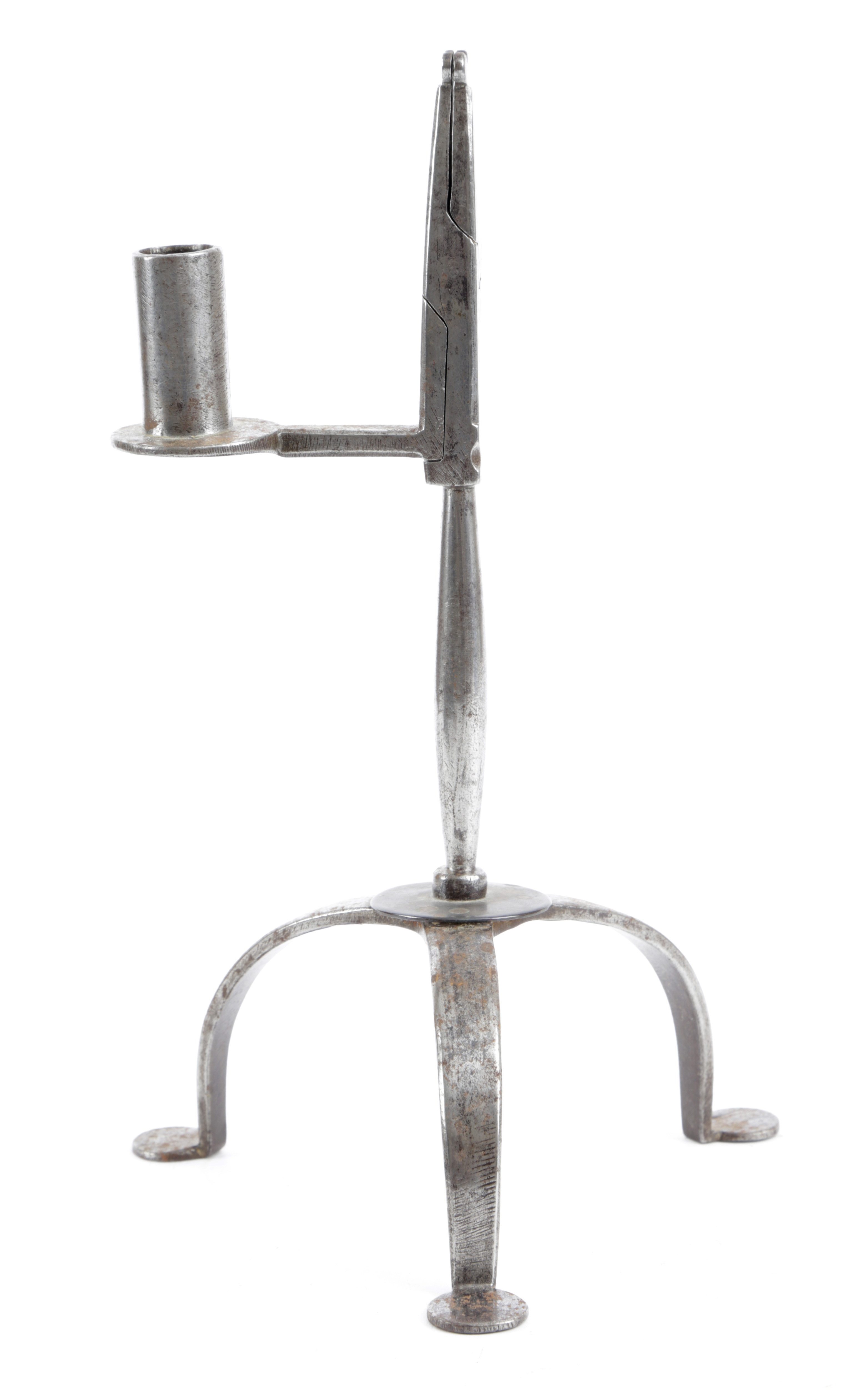 A FINE WELSH IRON TABLE RUSHLIGHT AND CANDLEHOLDER
