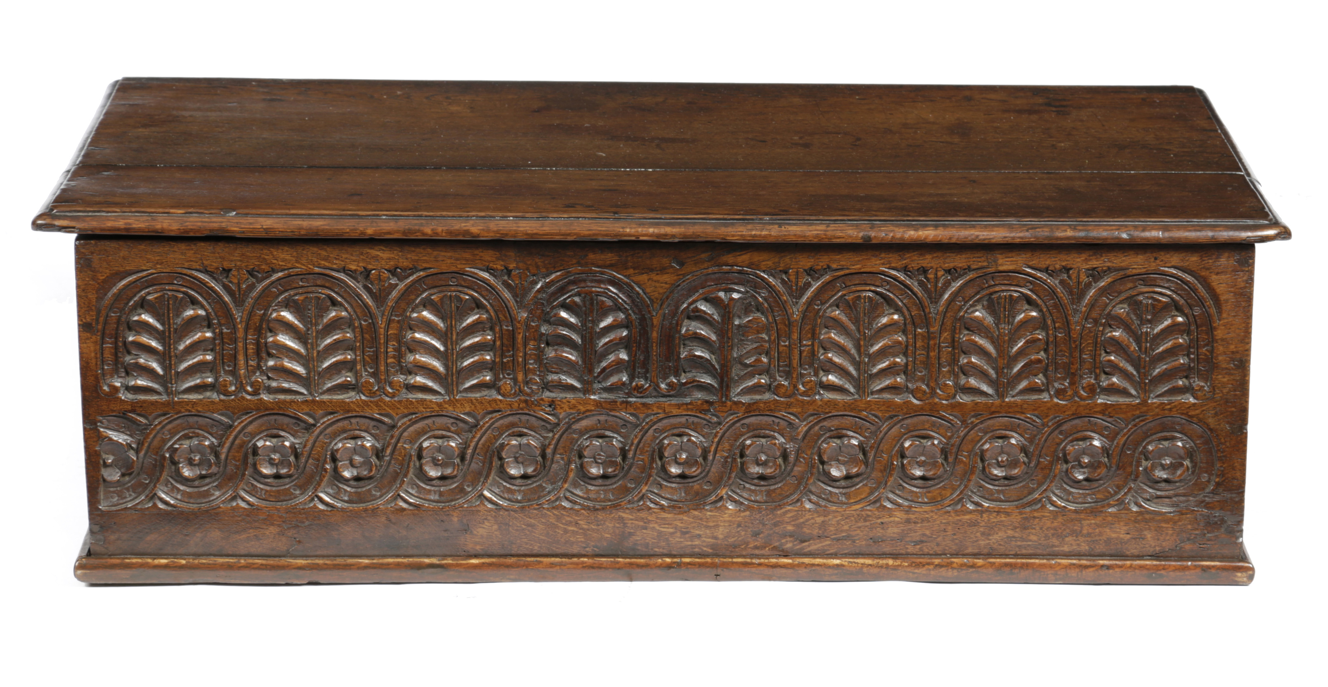 A LARGE JAMES I BOARDED OAK BOX