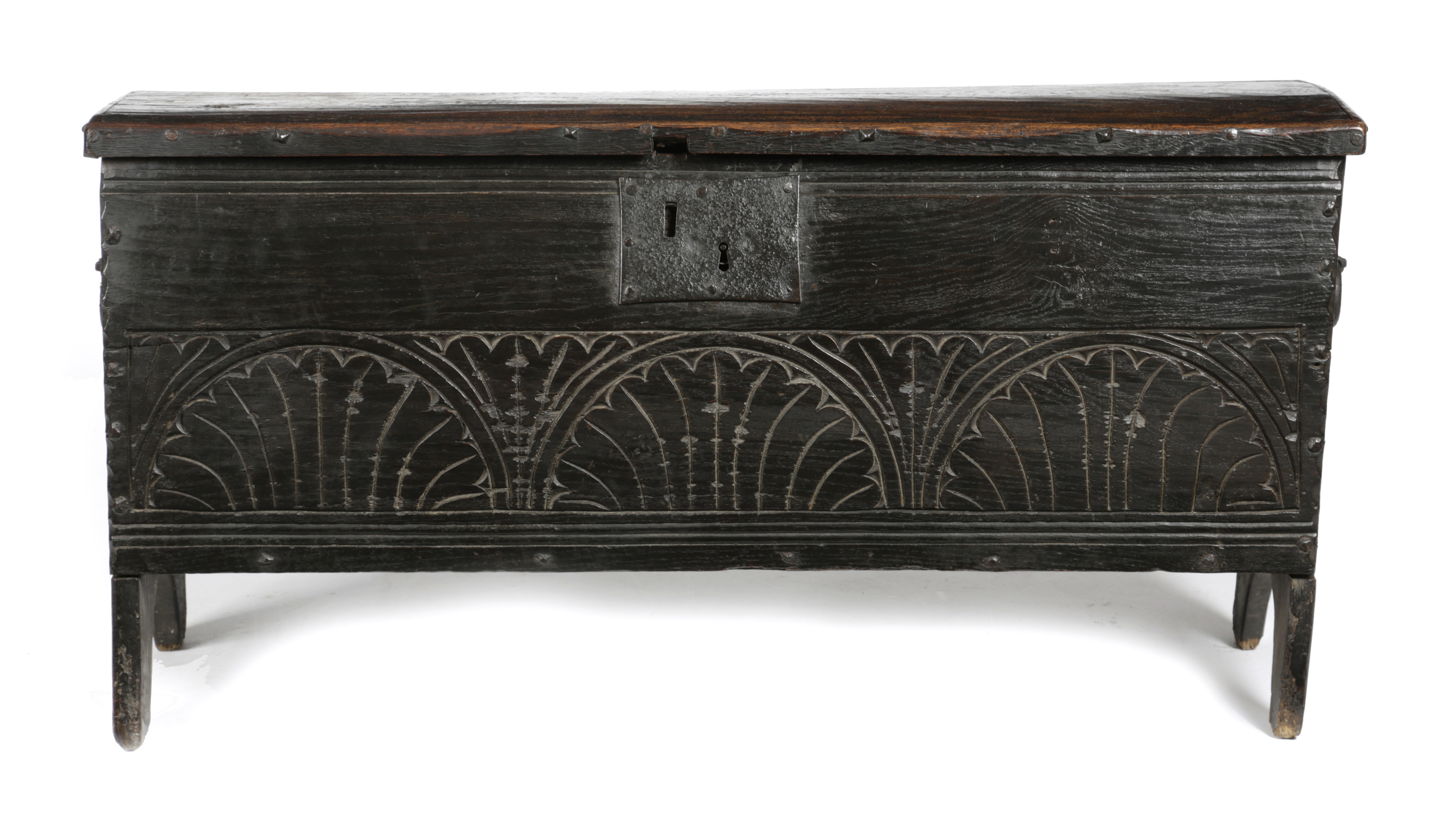 AN ENGLISH BOARDED OAK CHEST
