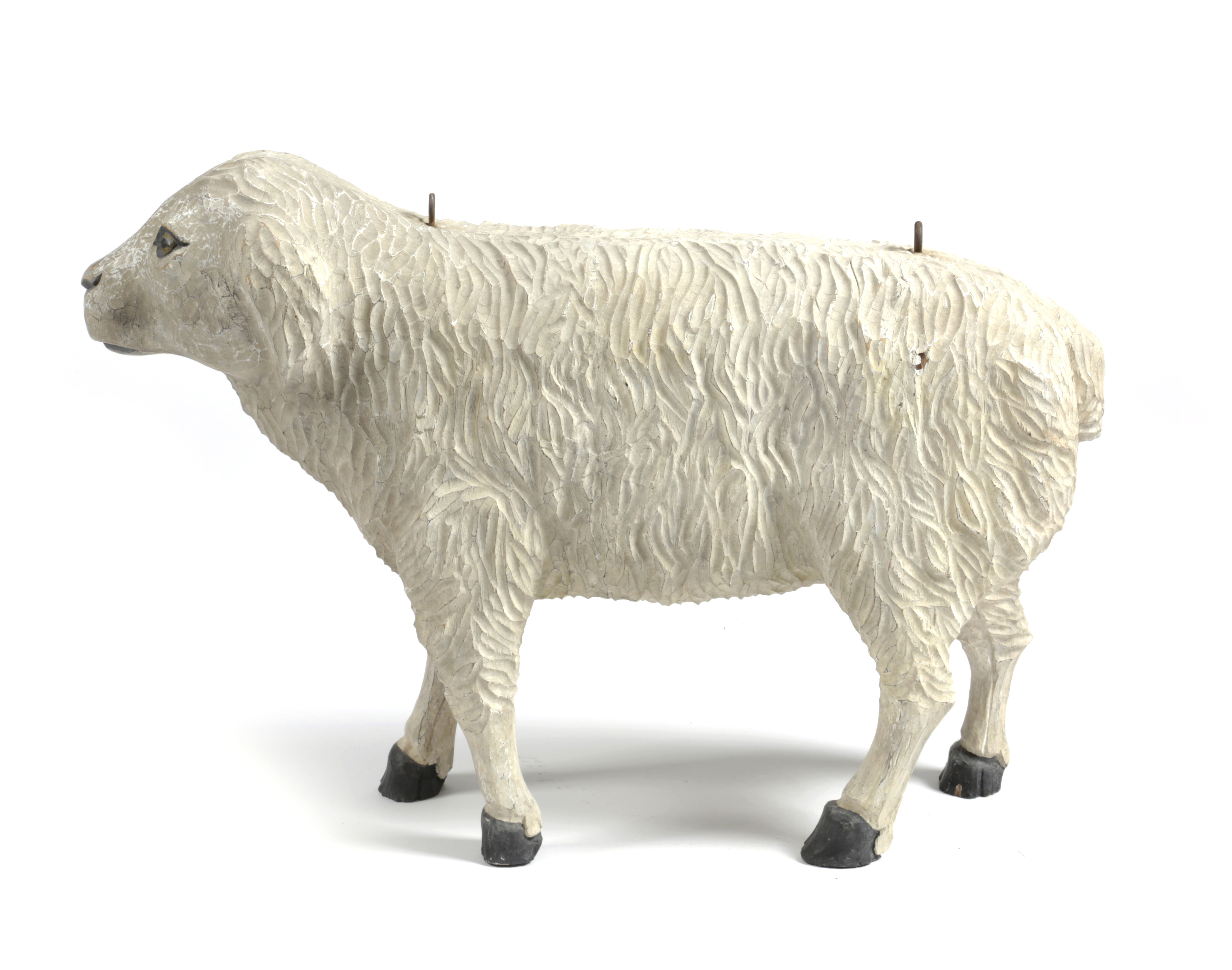 A FOLK ART CARVED AND PAINTED WOOD SHEEP PUB / SHOP SIGN