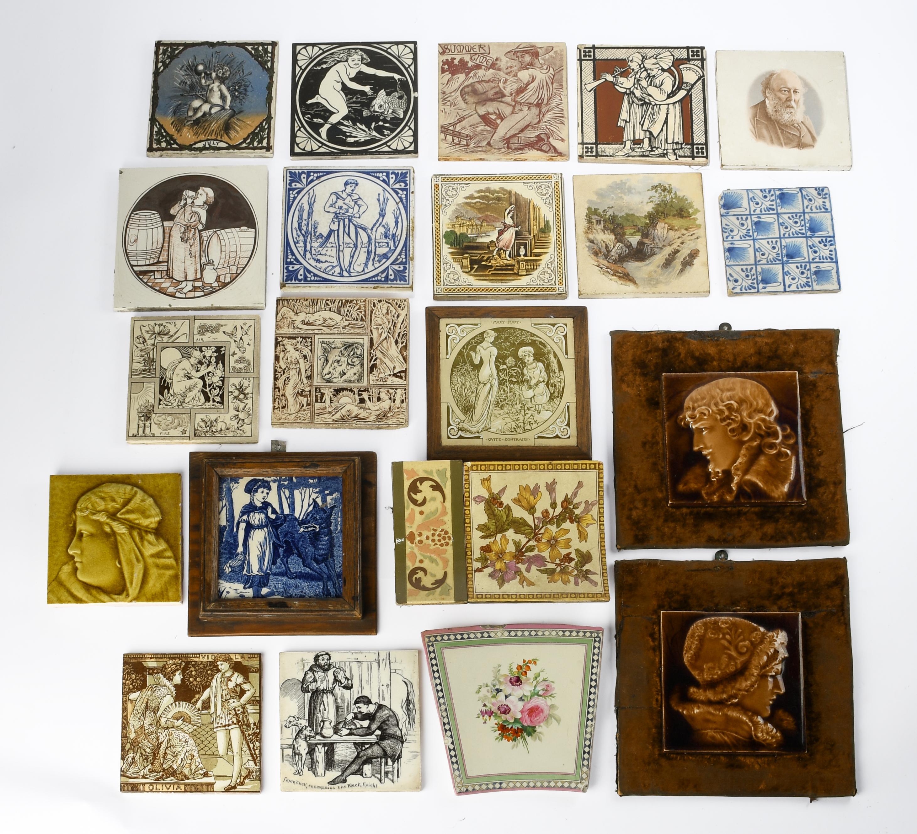 13 x 13cm; together with a Minton Secessionist tube lined tile, and twenty Art Nouveau pottery tiles (22).