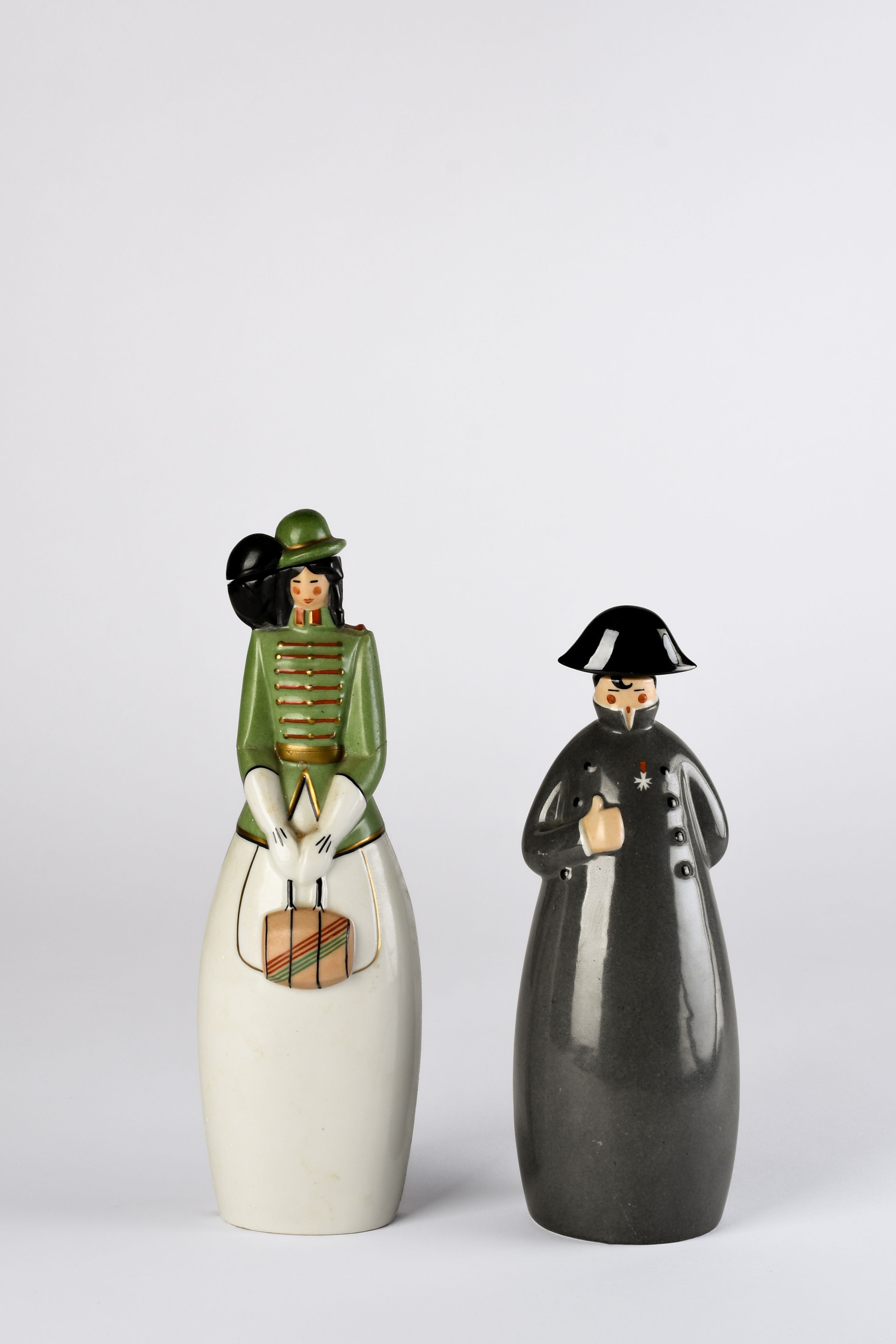 30cm high; and a Robj decanter and stopper modelled as Lady in a green hat and jacket, holding a handbag (4).