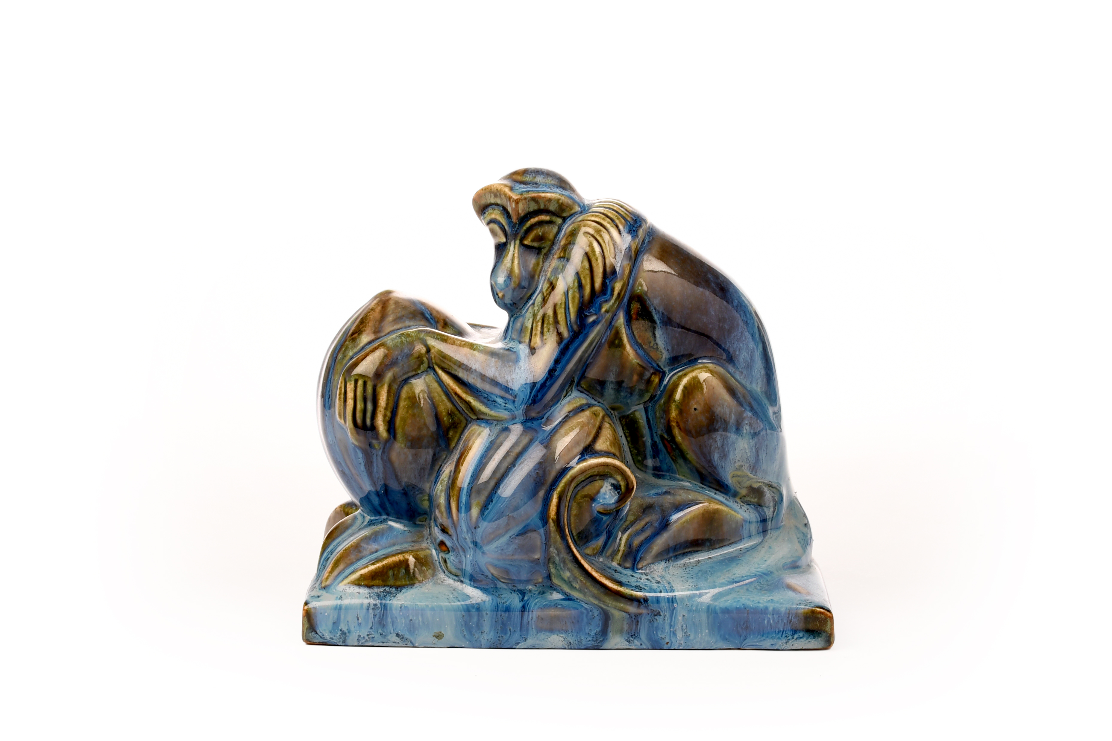 A pottery model of a seated monkey, possibly French