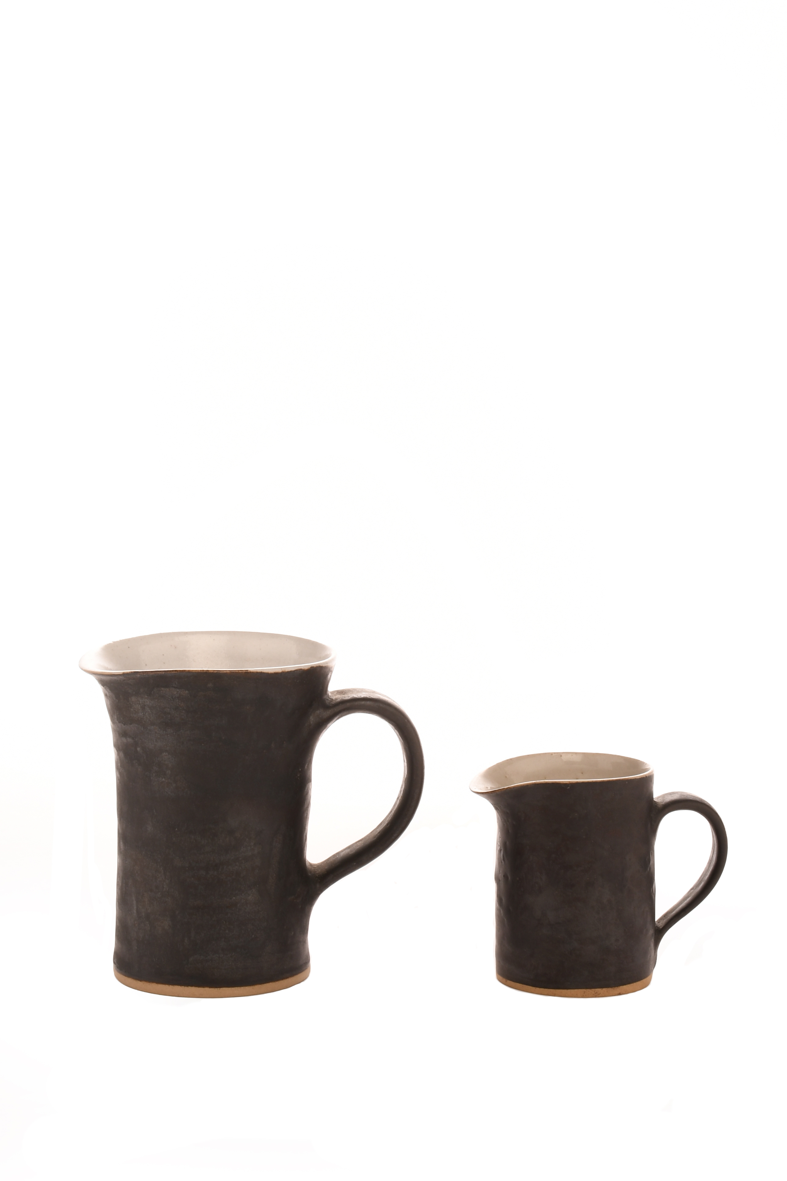 waisted cylindrical form, glazed manganese, the interior silver-grey, and another smaller,