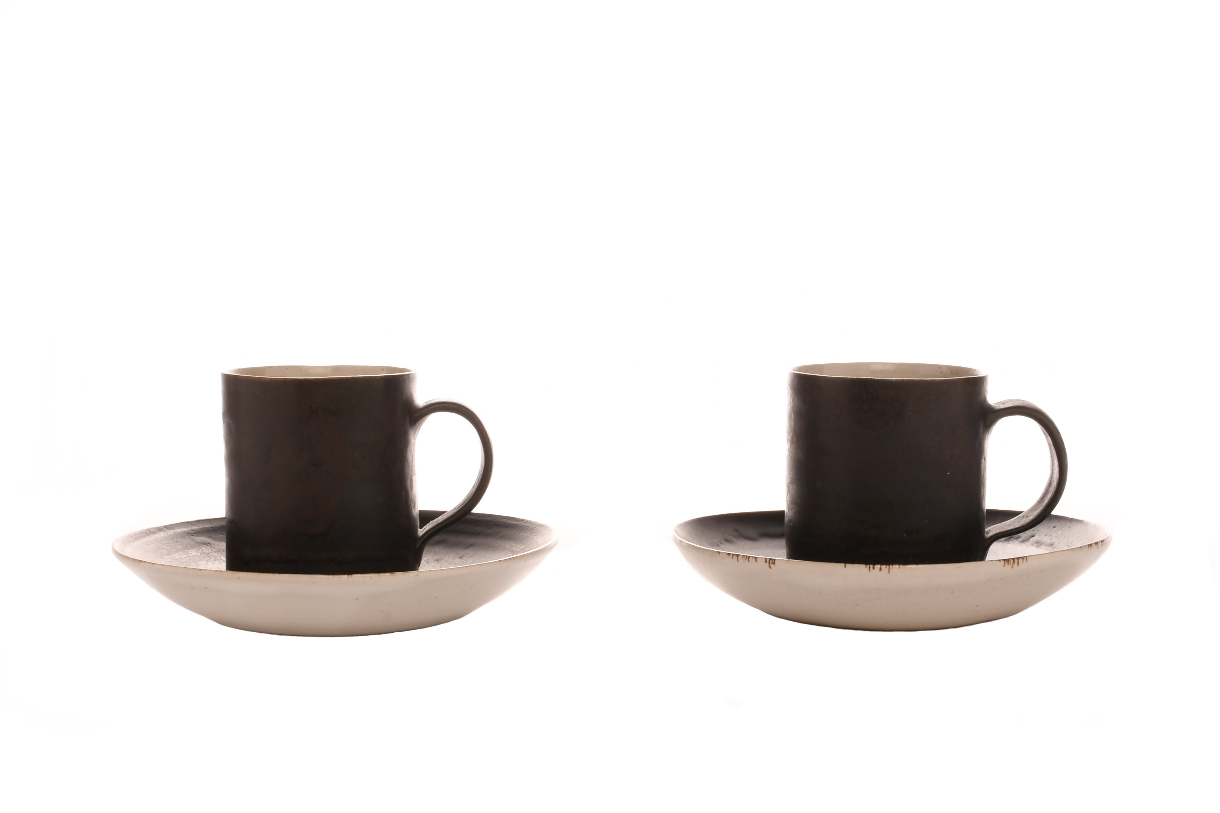 Two coffee cans and saucers