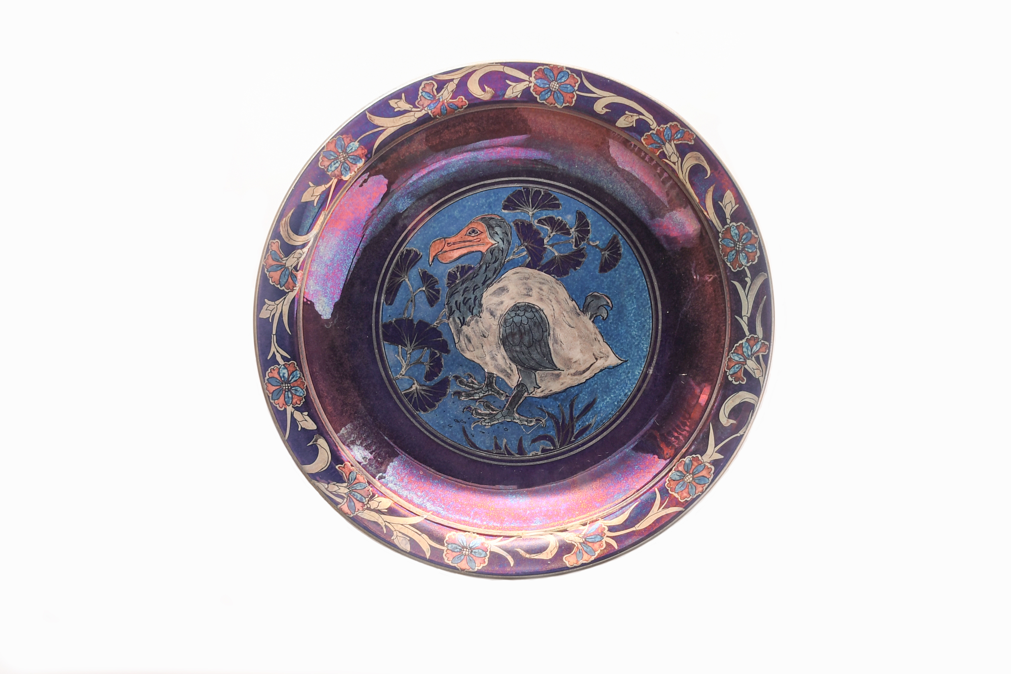 reduction fired lustre, decorated with a Dodo bird within a border of flowerheads