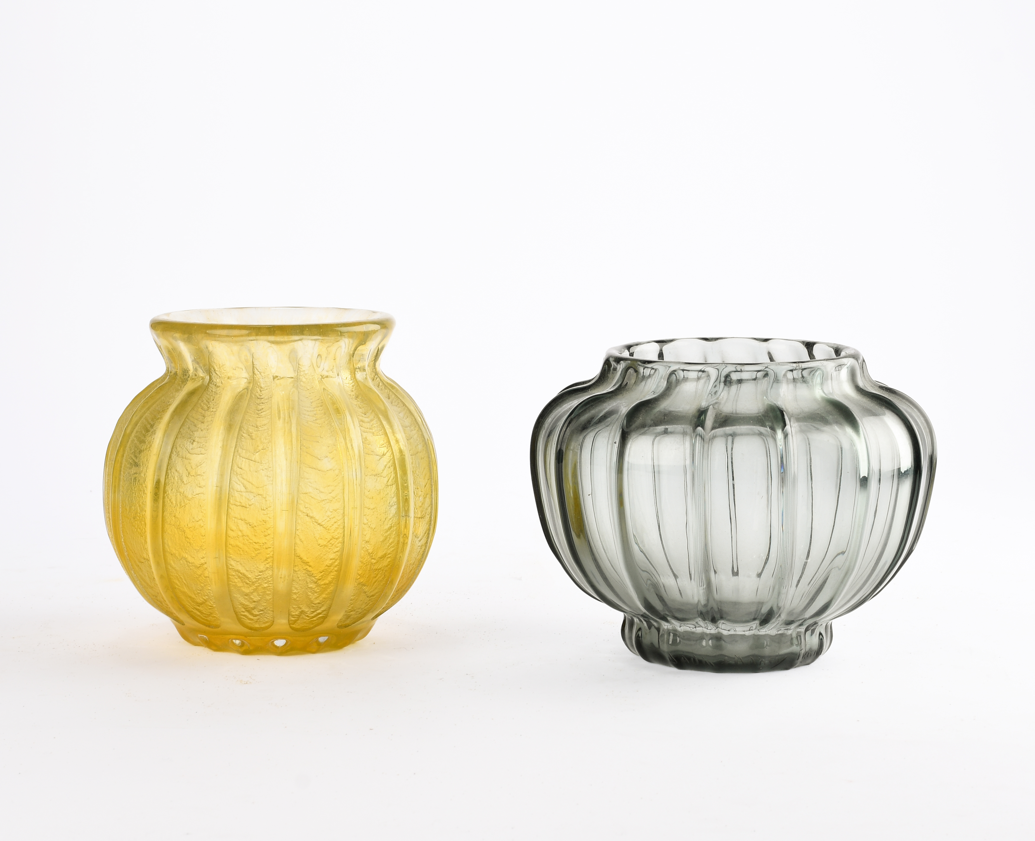 16cm high; with a similar Art Deco Daum Nancy ribbed glass vase (2).