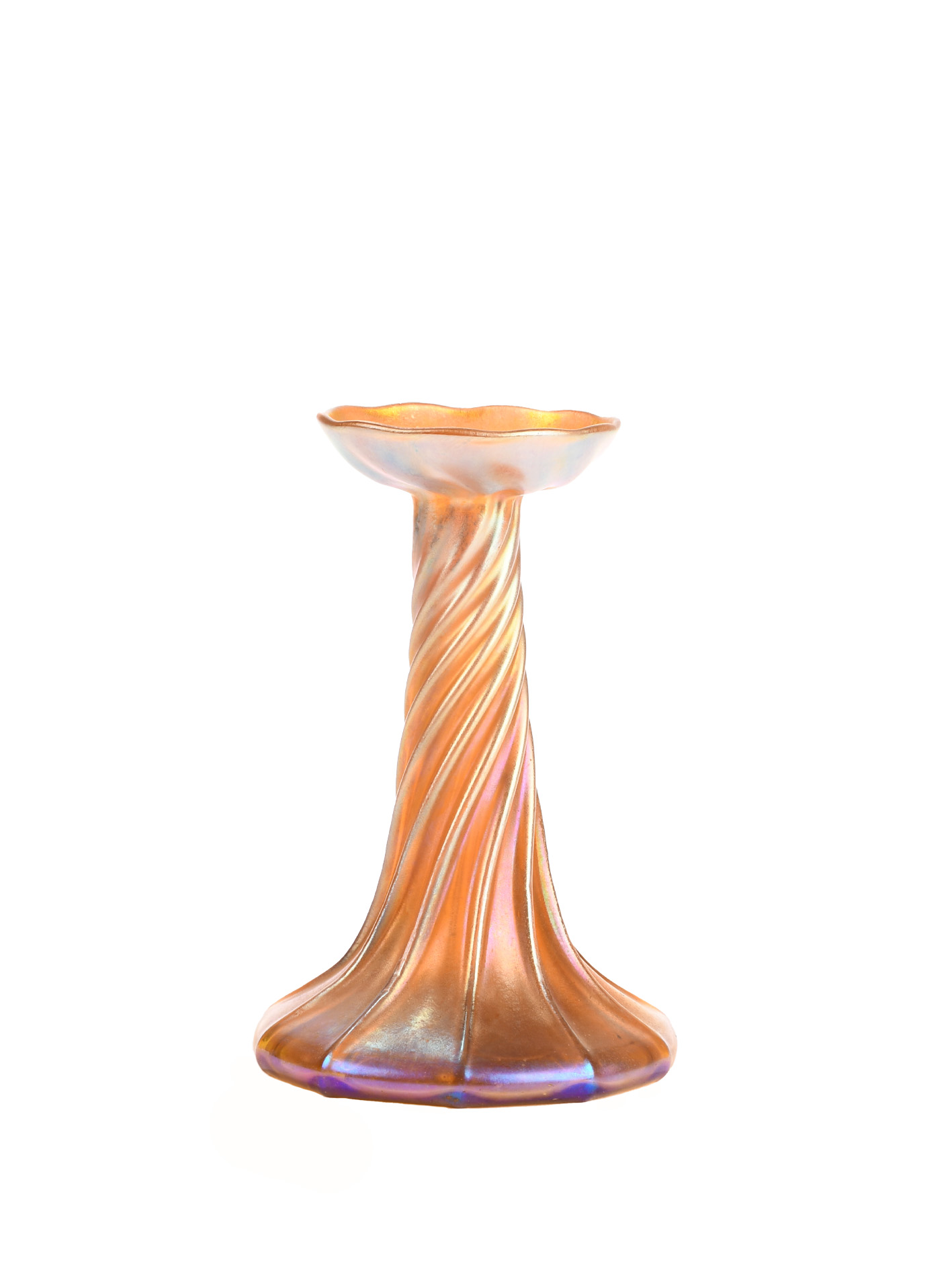 model 8040, tapering form with twisted vertical ribs, covered in a golden iridescence