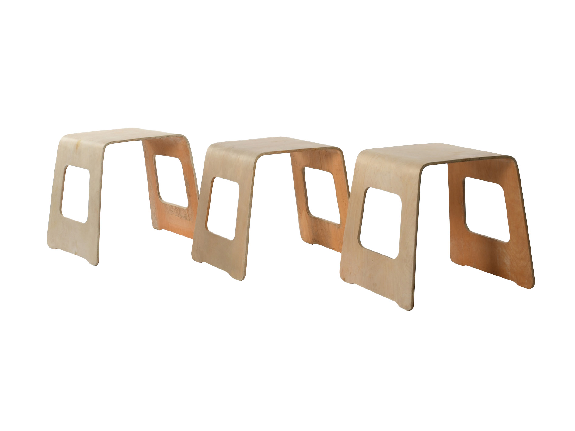 Three bent plywood stools, circa 1999