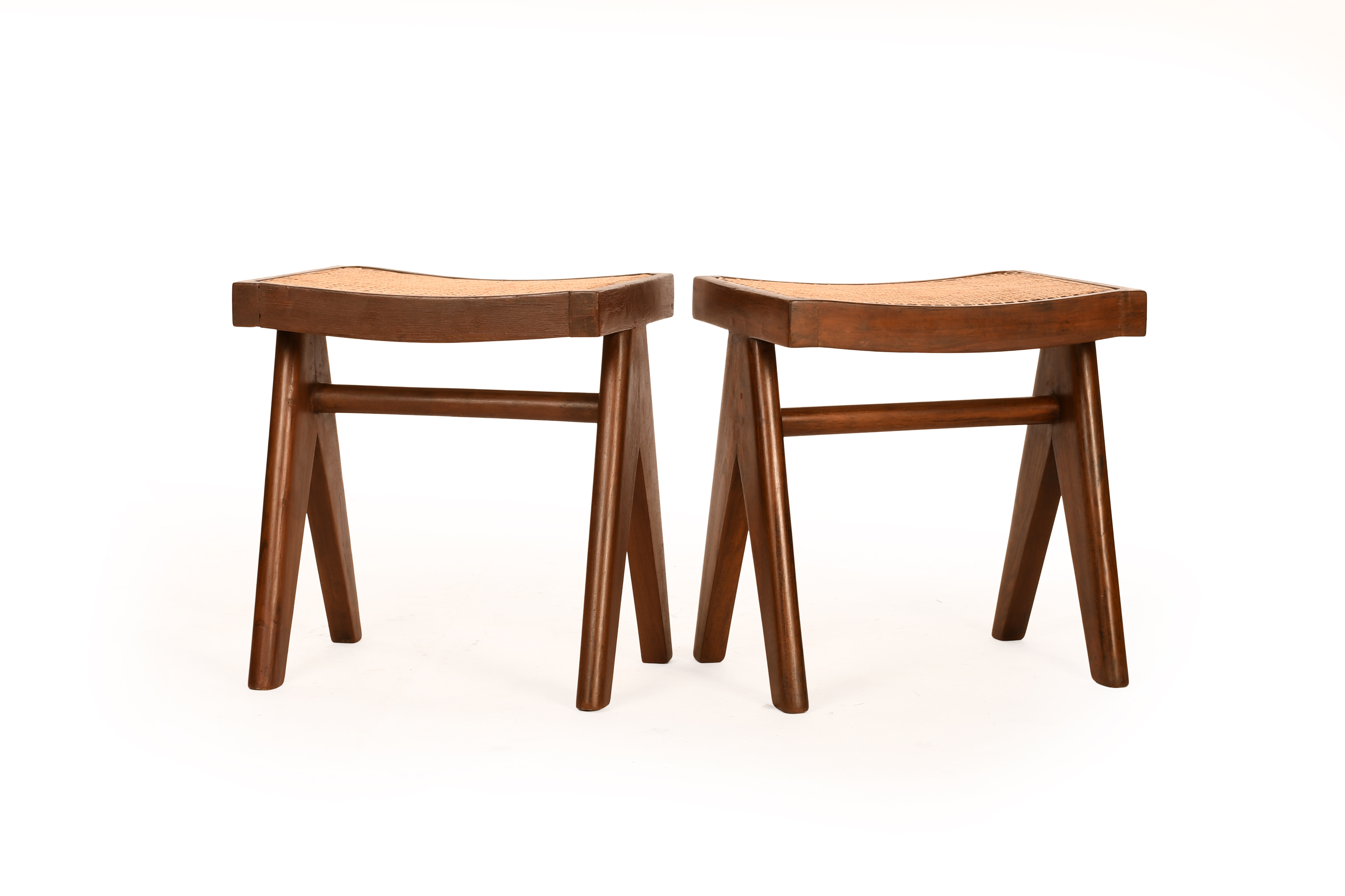A pair of model PJ-Si-34-A caned teak low stools, circa 1955