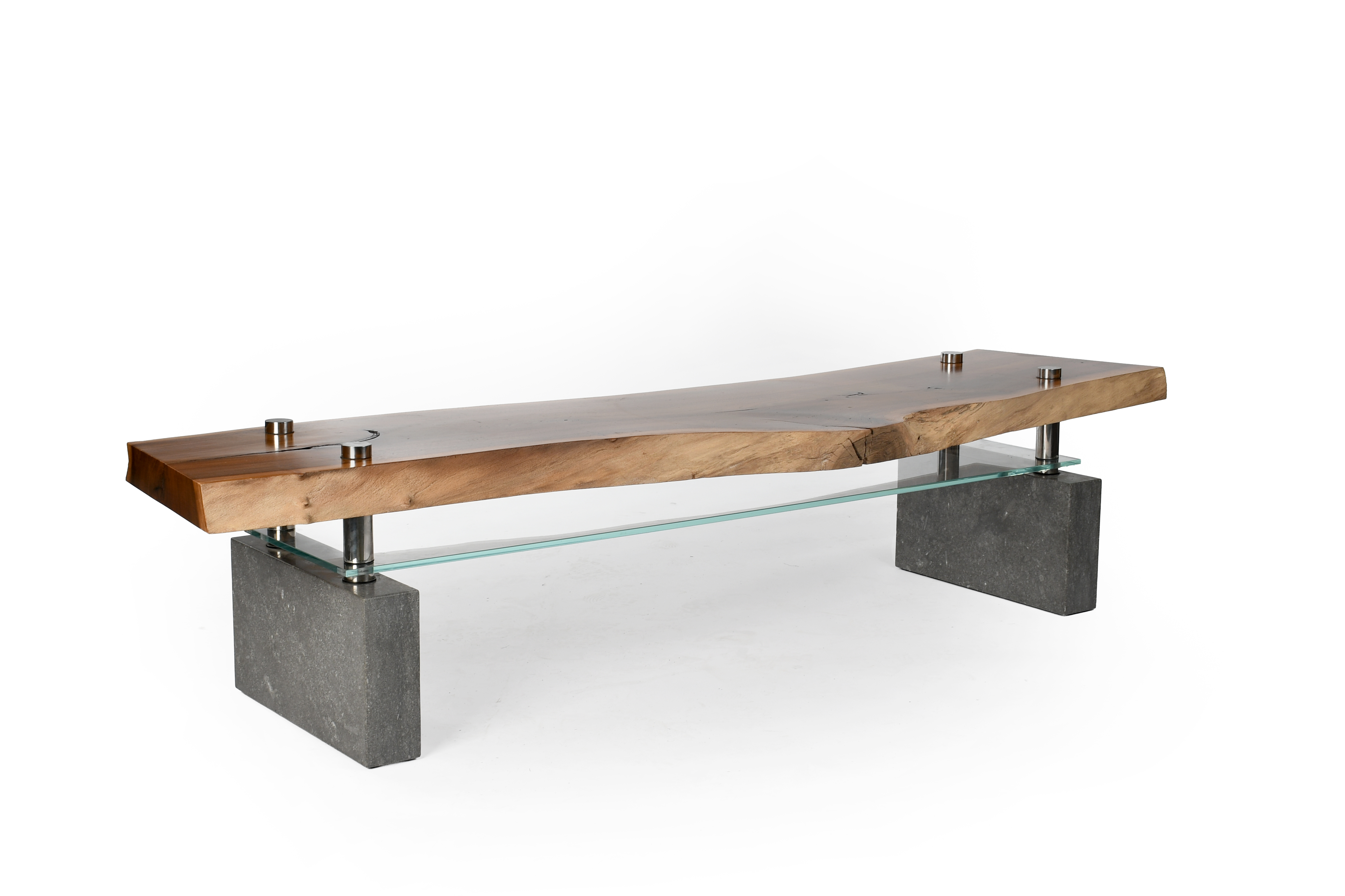 granite legs, a glass lower tier and a single plank hornbeam top