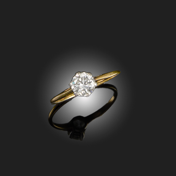 A DIAMOND SOLITAIRE RING, set with a round brilliant cut diamond weighing approximately 1.00cts, mounted in platinum and gold, size S, case