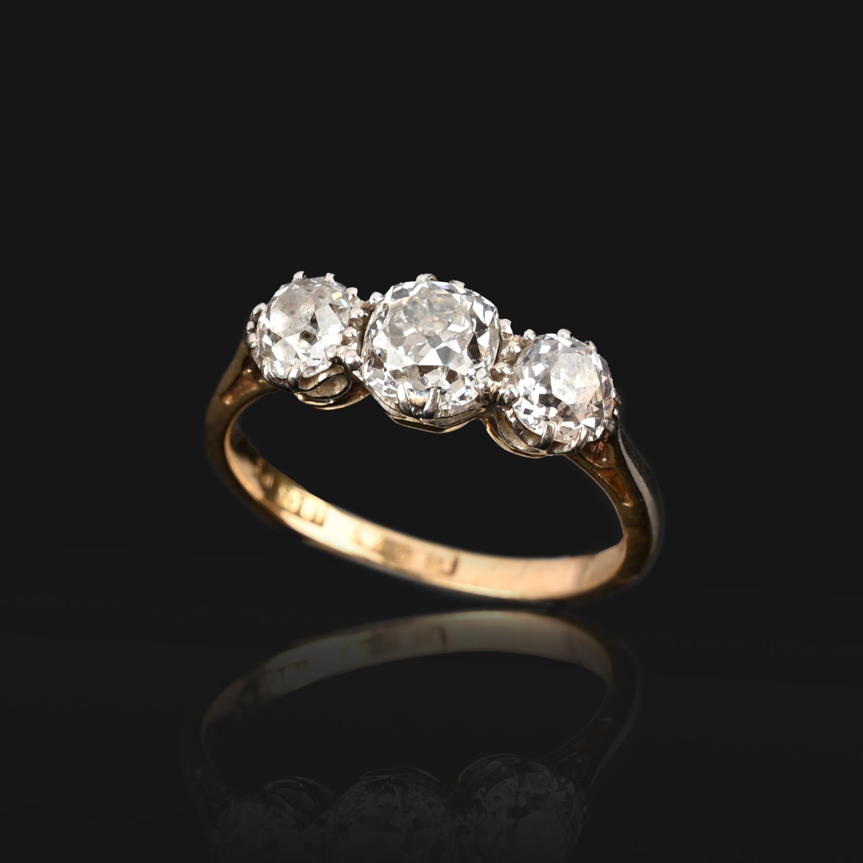AN EDWARDIAN DIAMOND THREE-STONE RING