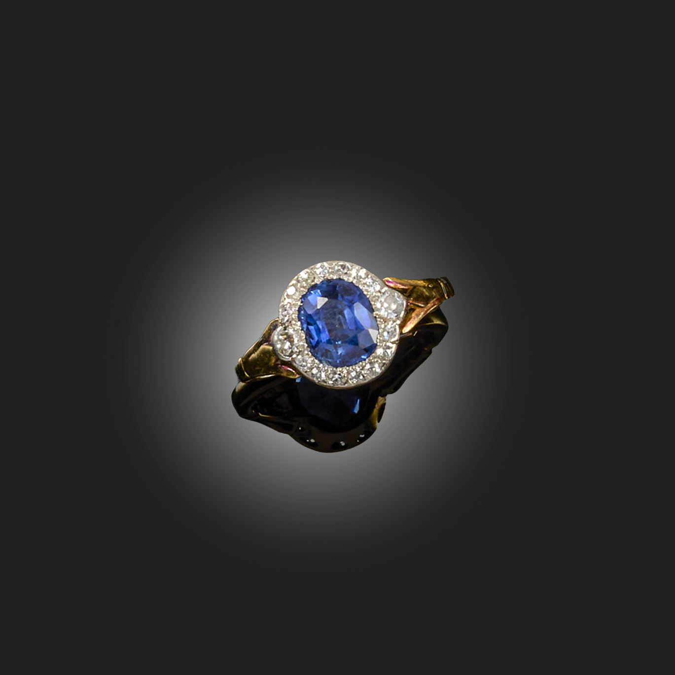 A SAPPHIRE AND DIAMOND CLUSTER RING