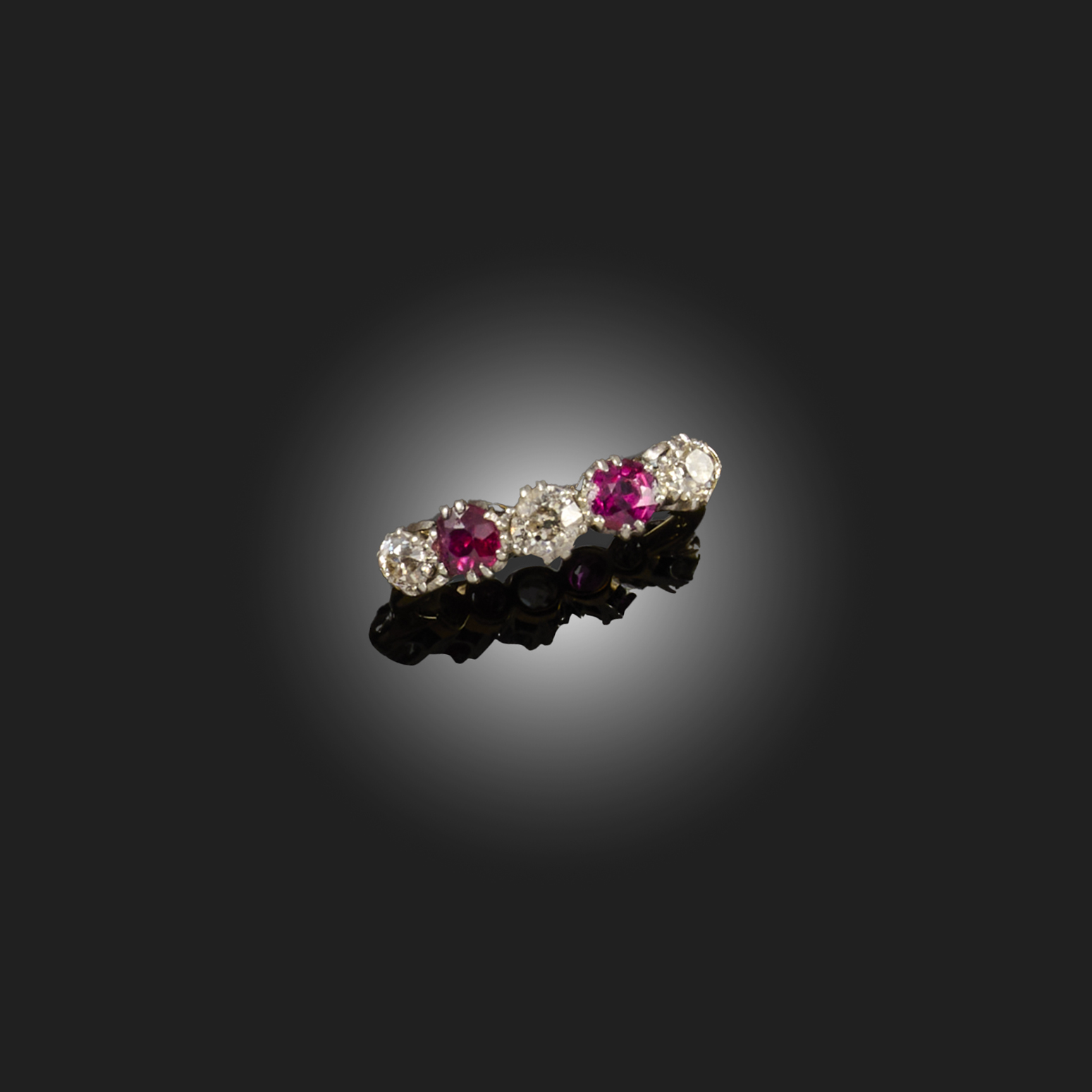 A RUBY AND DIAMOND FIVE STONE RING