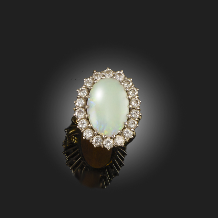 AN OPAL AND DIAMOND CLUSTER RING