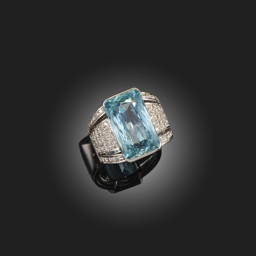 AN AQUAMARINE AND DIAMOND DRESS RING