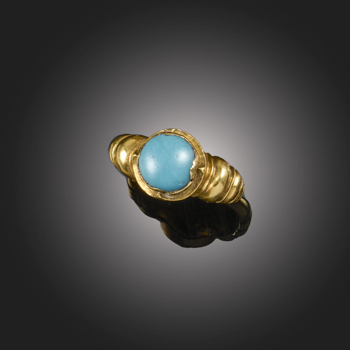 A TURQUOISE AND GOLD RING, JAVA, 8TH-12TH CENTURY