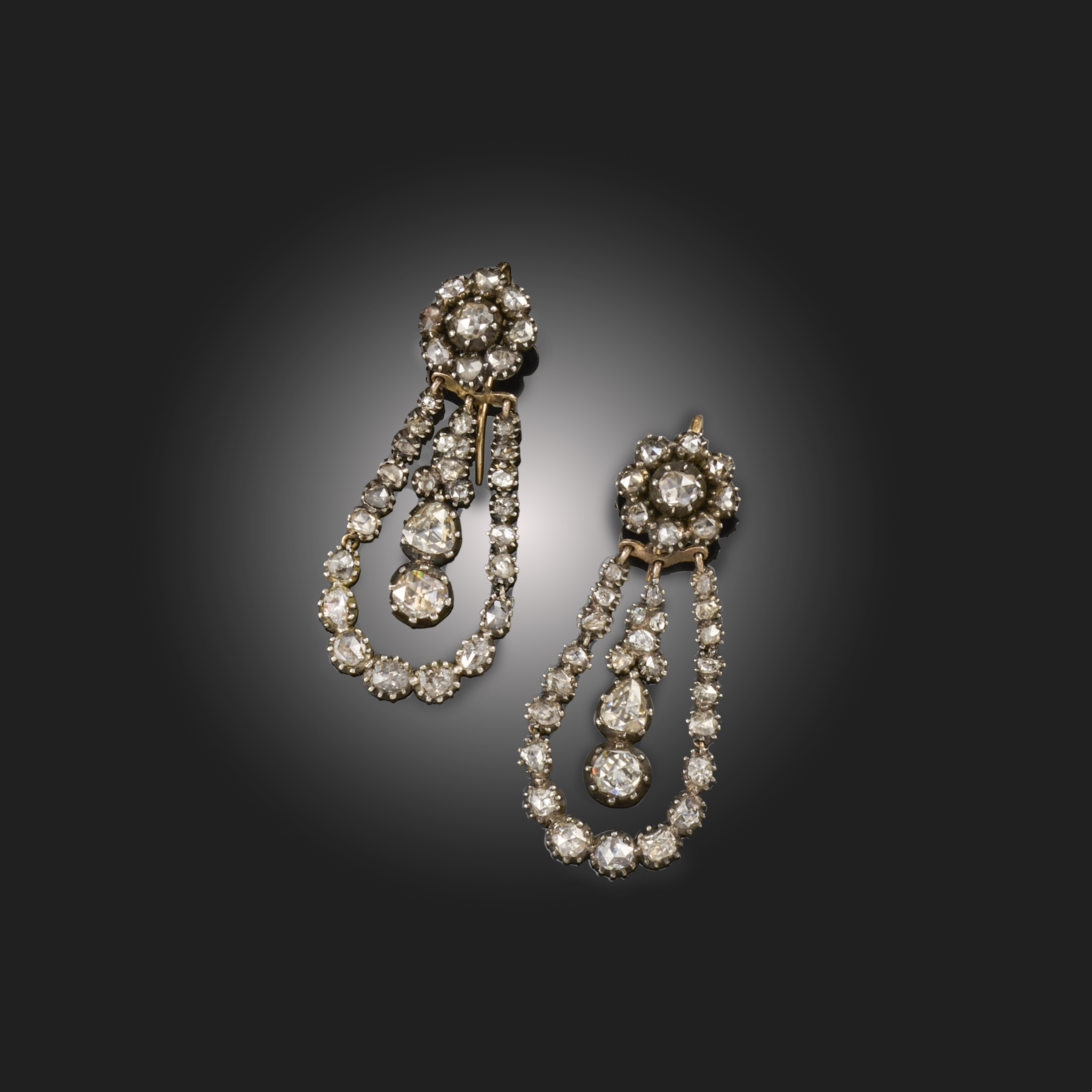 A PAIR OF GEORGE III DIAMOND DROP EARRINGS, EARLY 19TH CENTURY