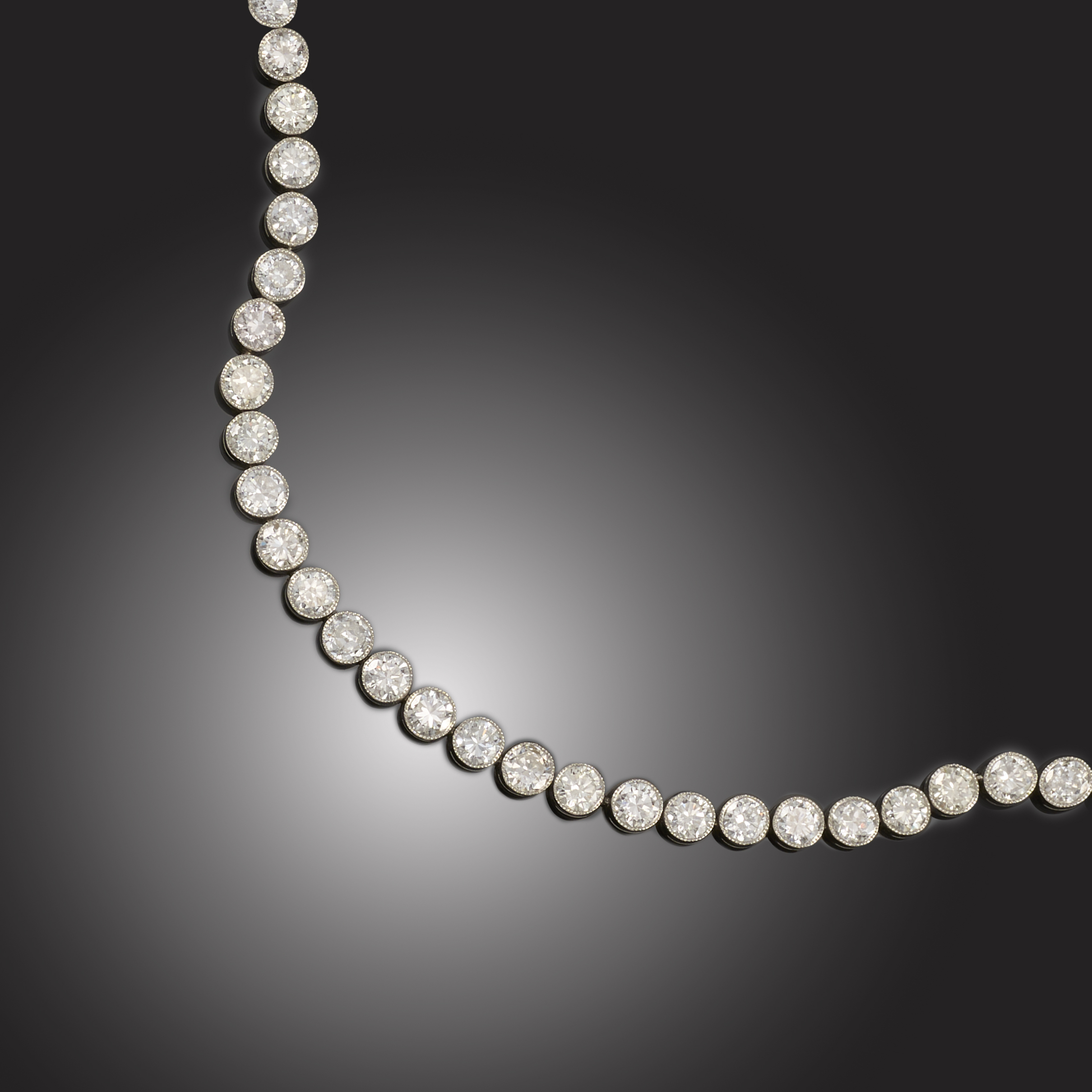 A DIAMOND LINE BRACELET, the round brilliant-cut diamonds millegrain-set in platinum, total approximate diamond weight 8.00cts, length 19cm