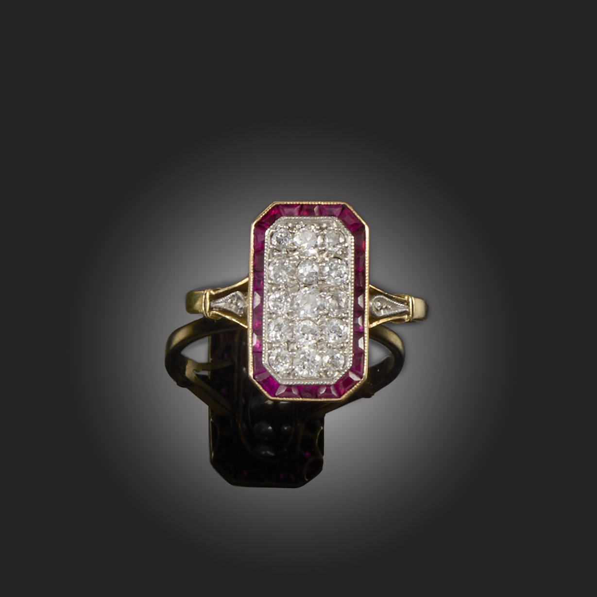 AN EDWARDIAN RUBY AND DIAMOND PLAQUE RING