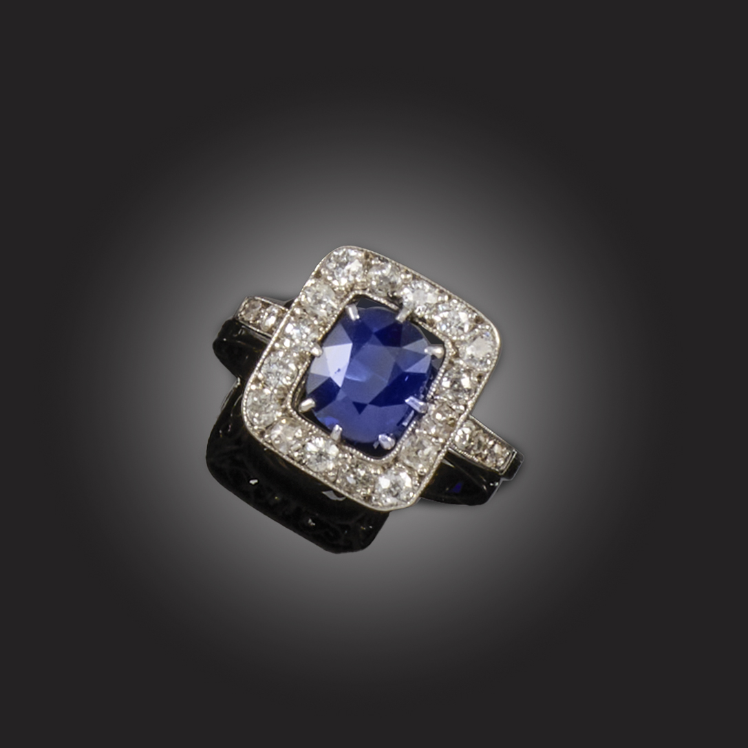 AN ART DECO SAPPHIRE AND DIAMOND RING