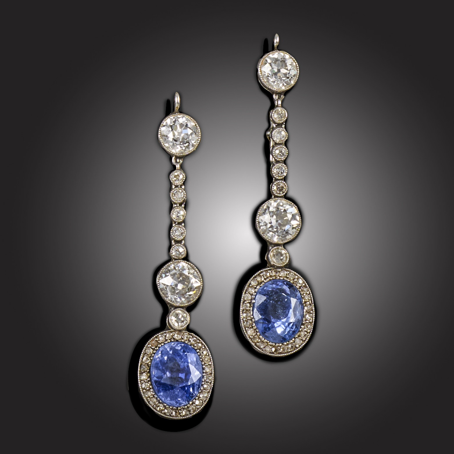 A PAIR OF EDWARDIAN SAPPHIRE AND DIAMOND DROP EARRINGS
