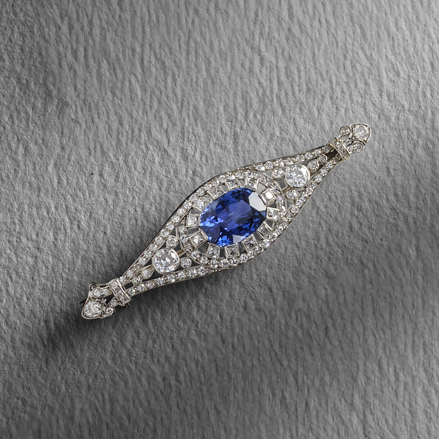 AN EDWARDIAN SAPPHIRE AND DIAMOND BROOCH