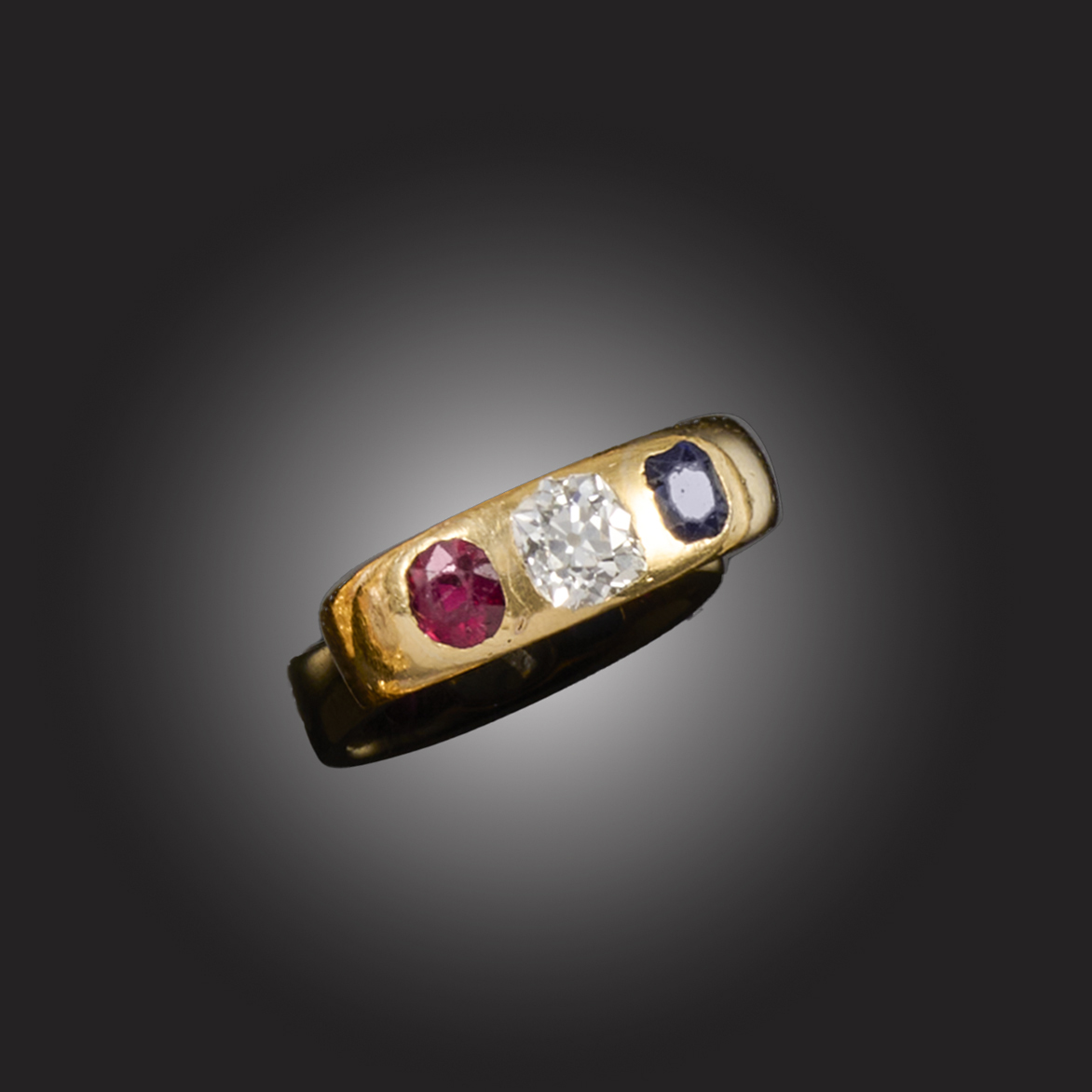 A LATE 19TH CENTURY RUBY, DIAMOND AND SAPPHIRE RING