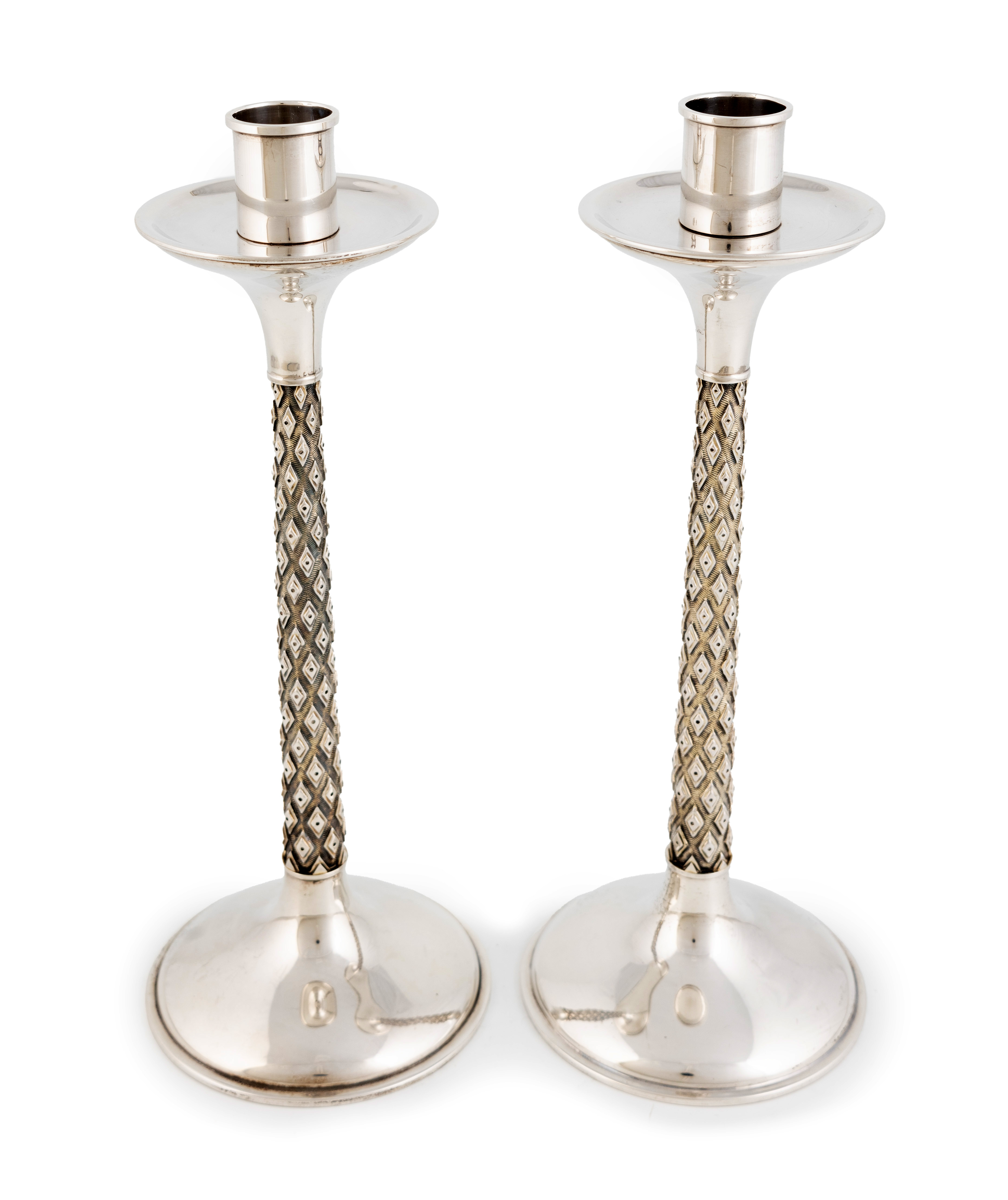 Designed by Anthony Elson for Garrard and Co., a pair of modern silver candlesticks,