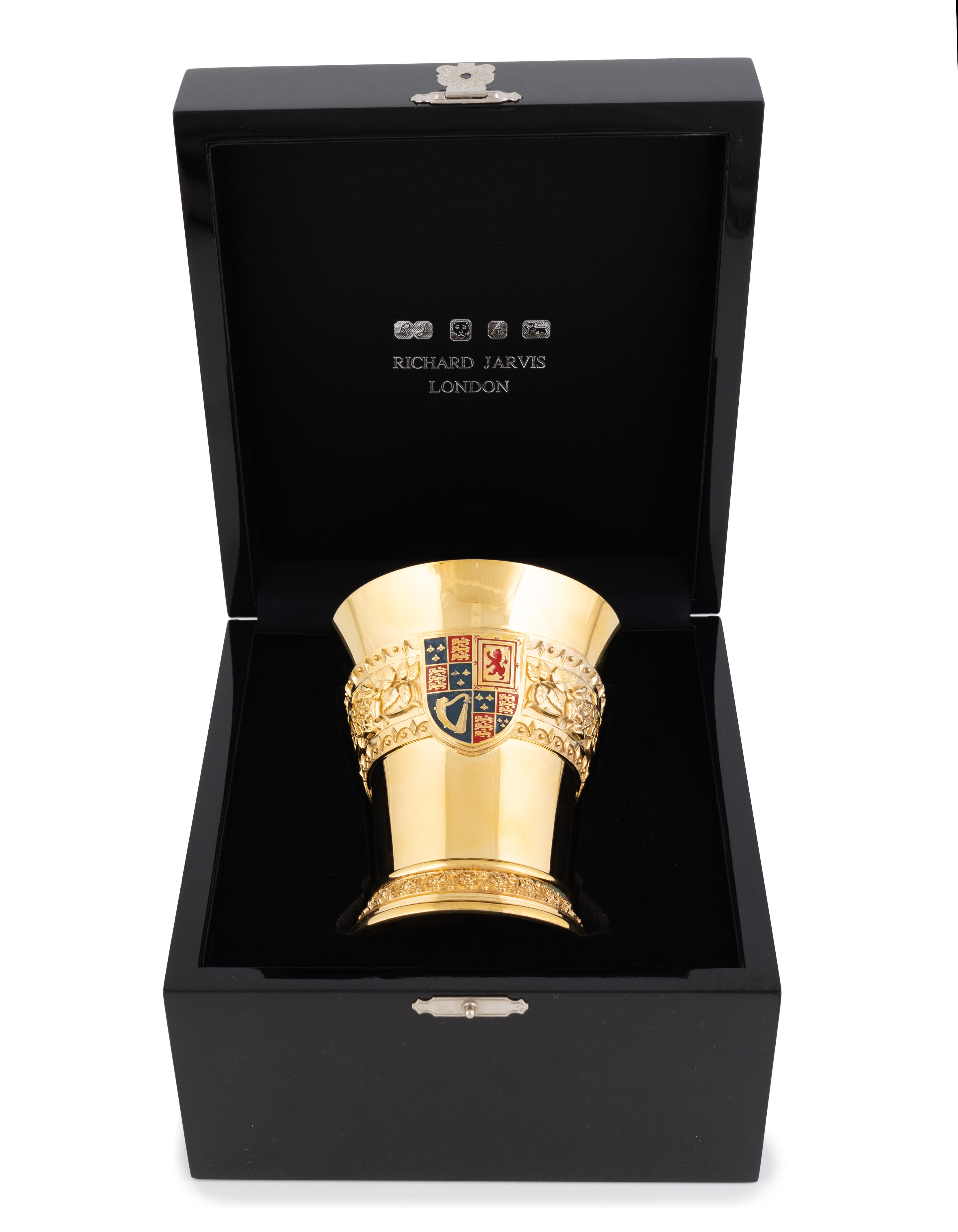 By Richard Jarvis, a modern commemorative silver-gilt and enamel beaker,