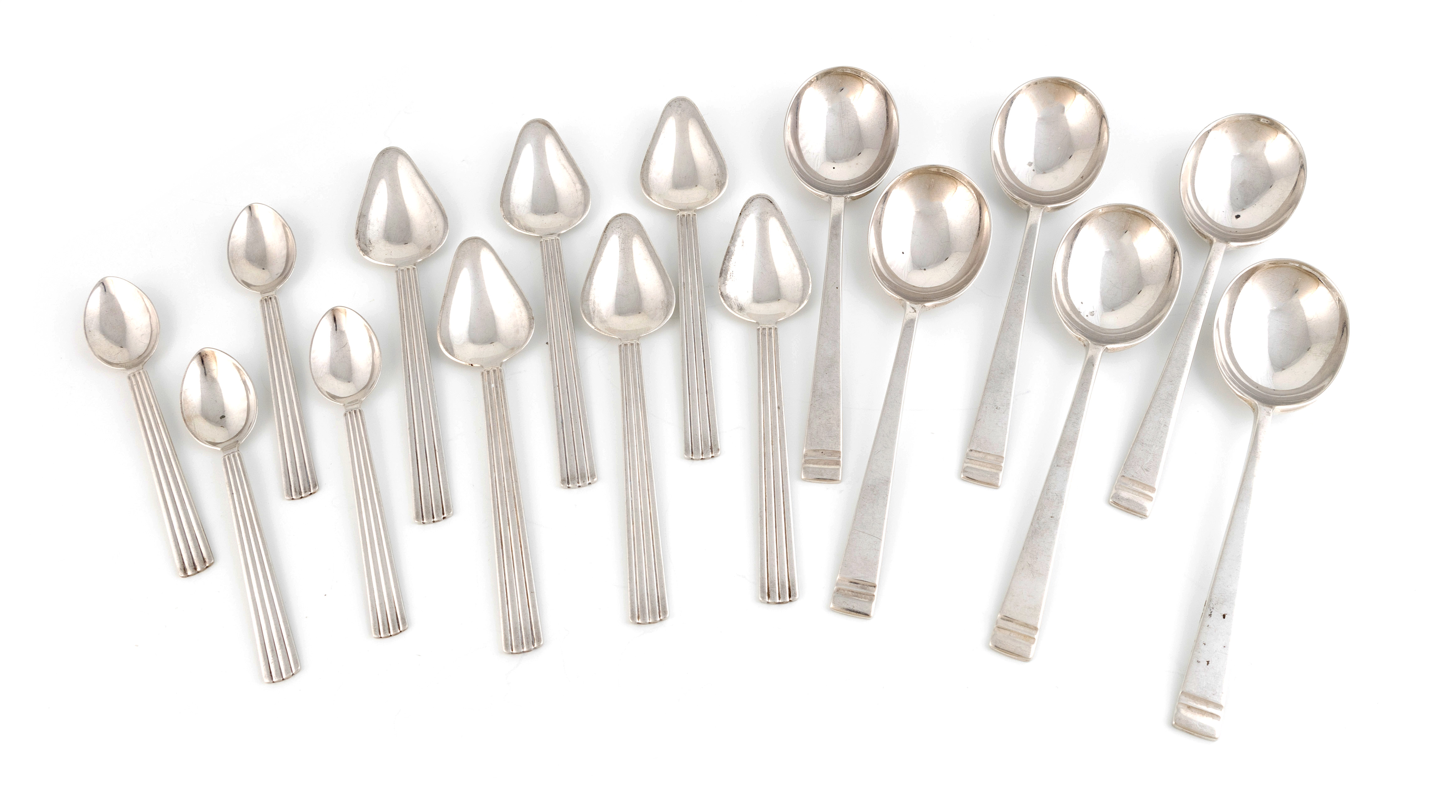 Designed by Sigvard Bernadotte for Georg Jensen, a set of six Danish silver Bernadotte pattern grapefruit spoons and four teaspoons,