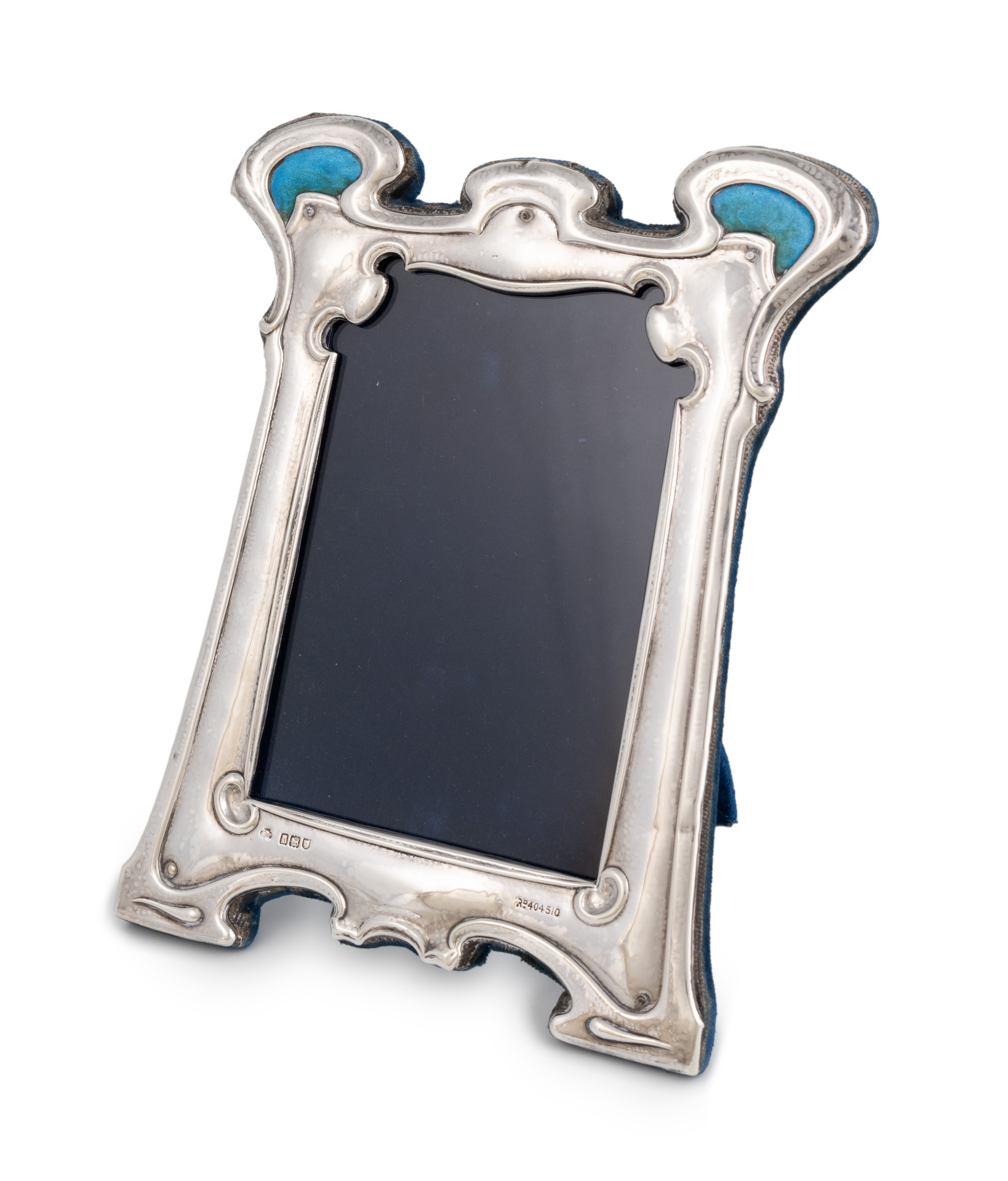 An Edwardian Art Nouveau silver and enamel photograph frame,