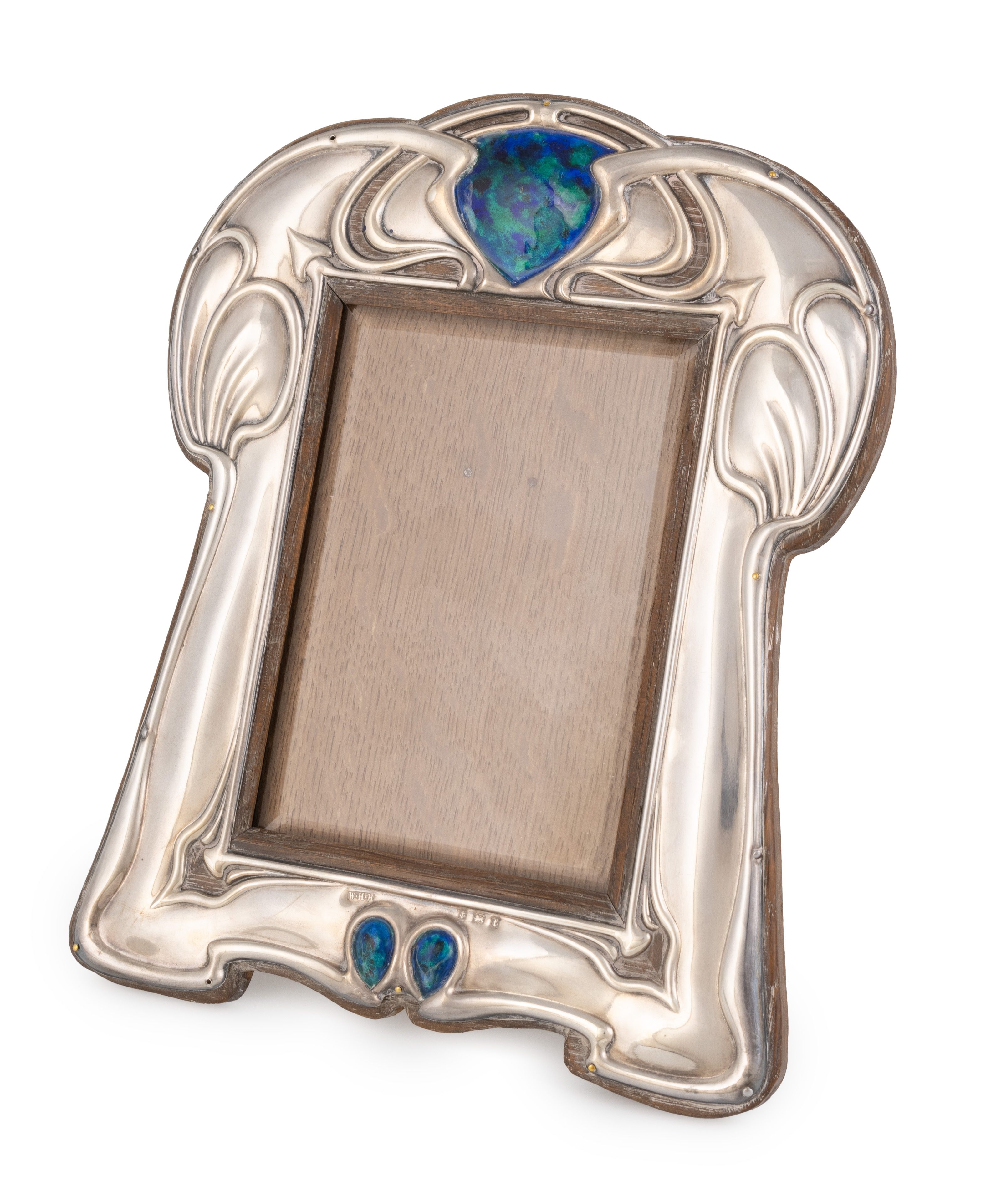 An Edwardian Art Nouveau silver and enamel photograph frame,