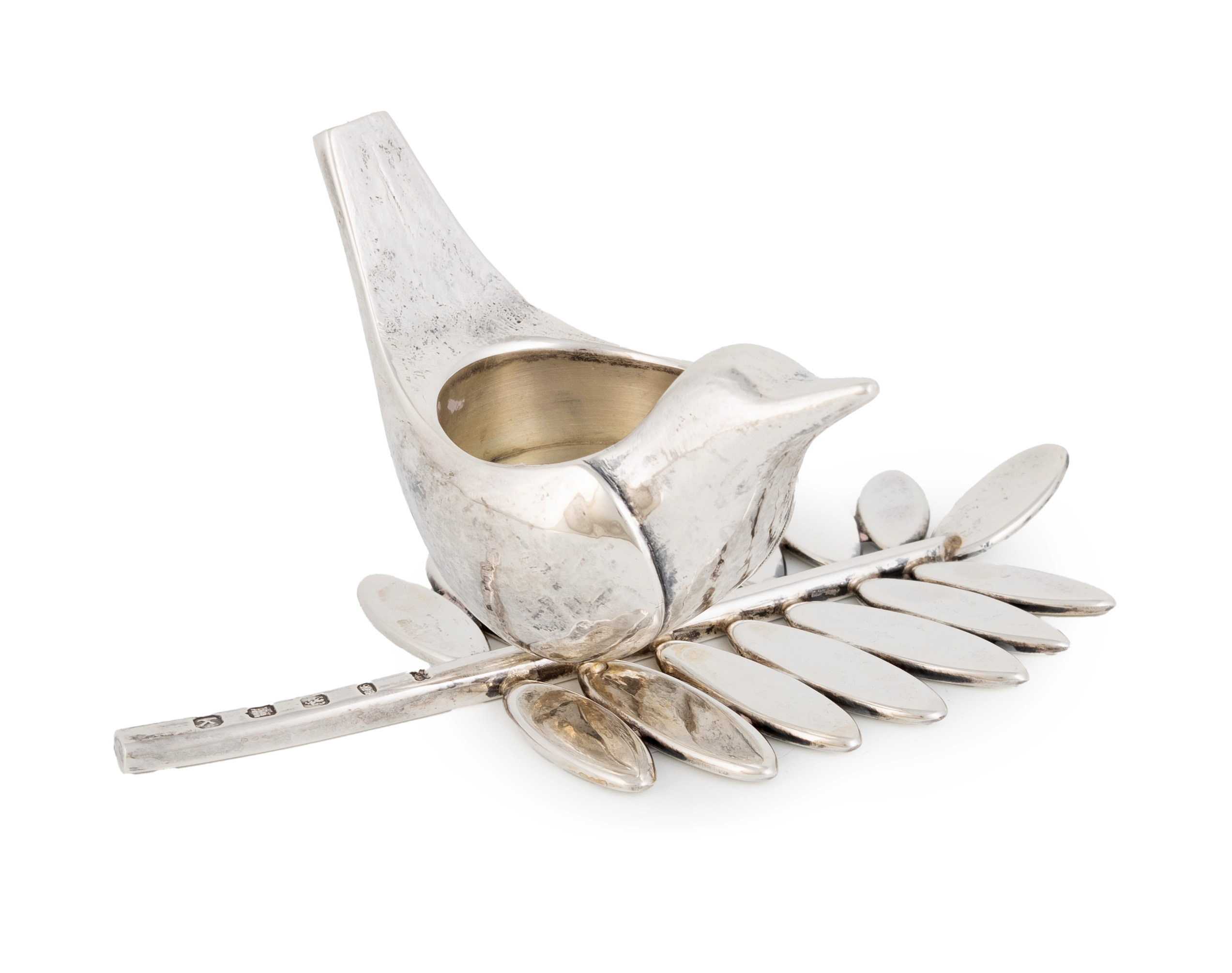 modelled as a detachable bird sitting on a rowan tree branch, length 15.8cm, approx. weight 23.2oz.