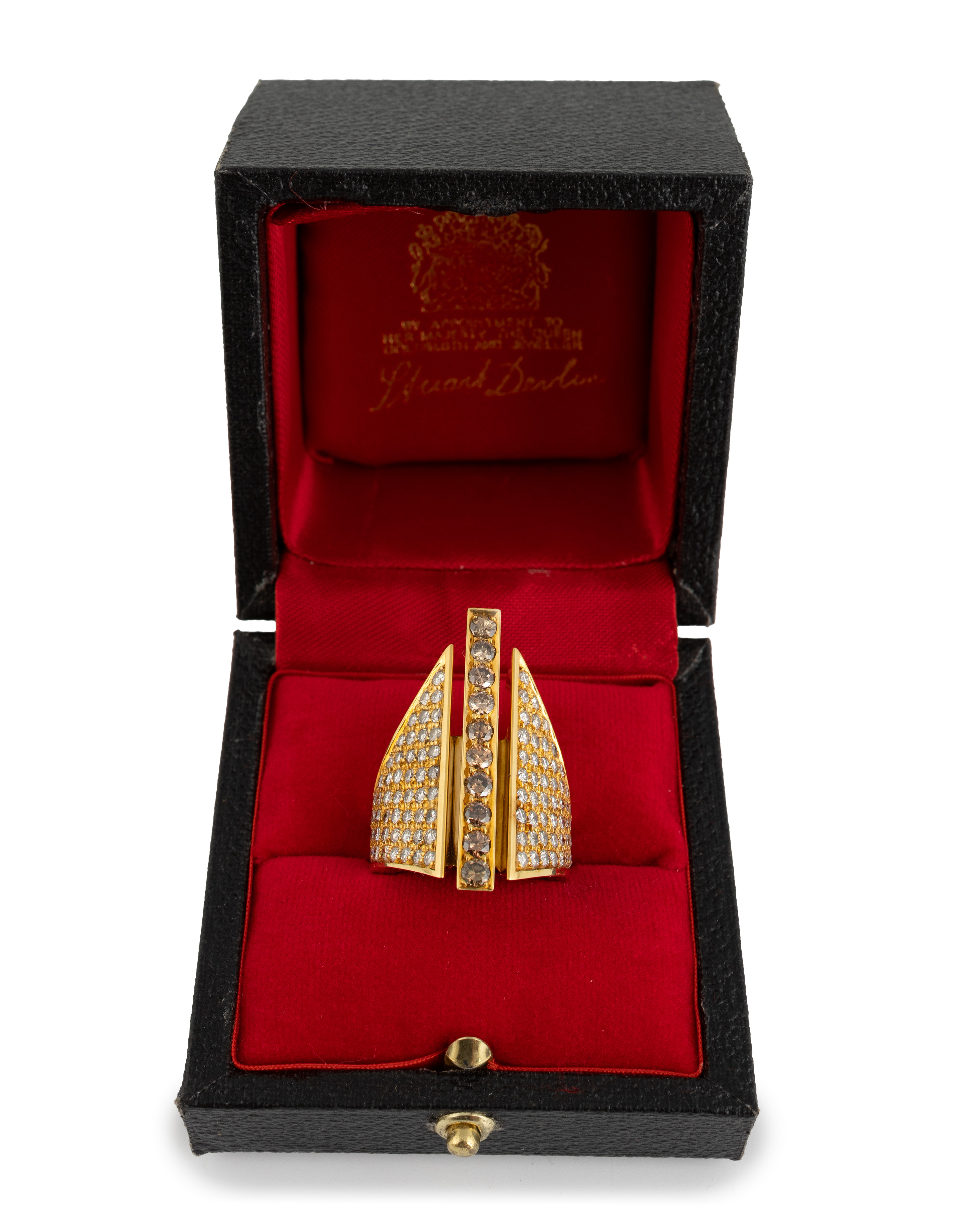 By Stuart Devlin, a modern 18-carat gold and diamond mitre ring,