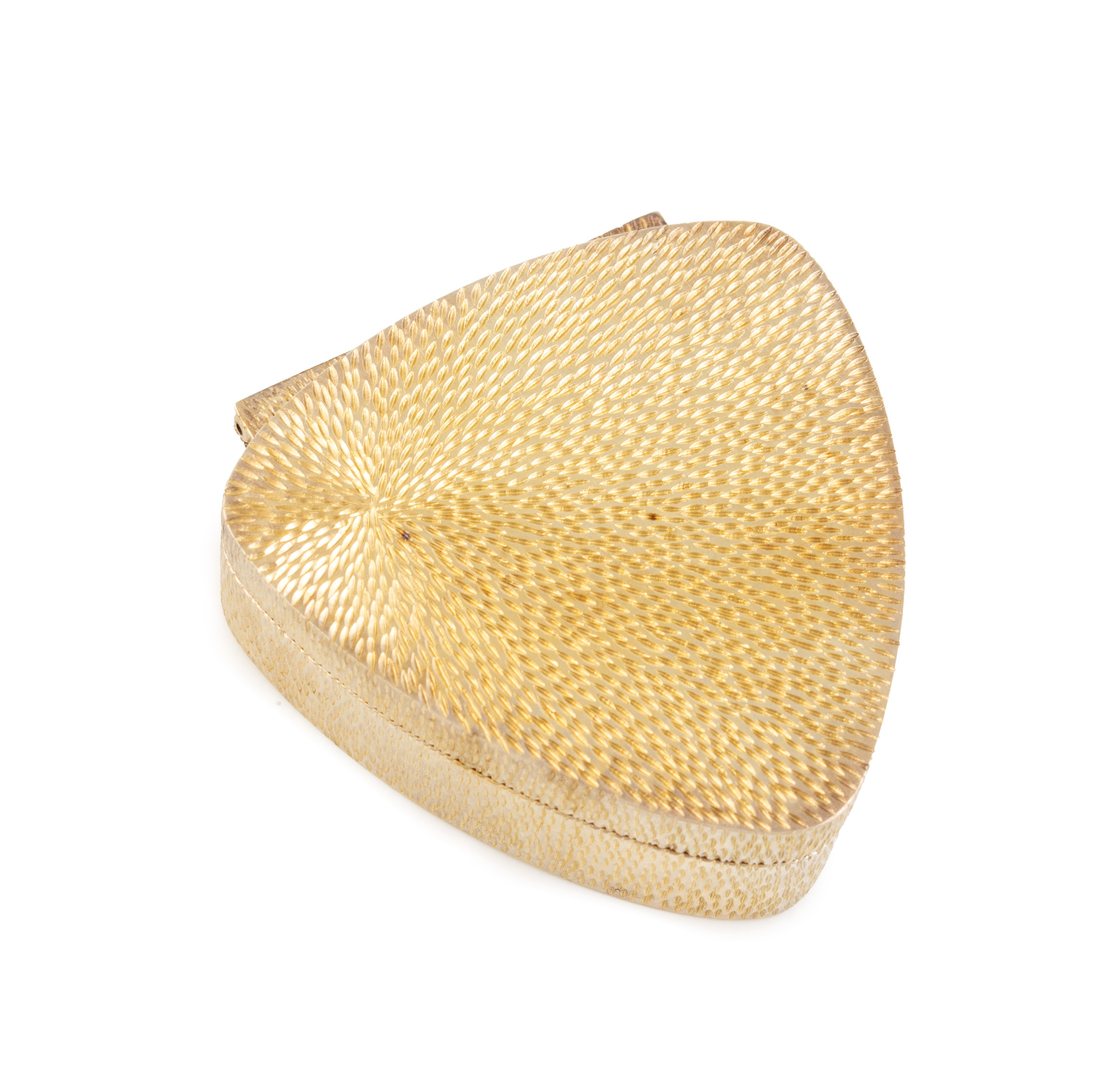 rounded triangular form, textured decoration, length 5.6cm, approx. weight 2.2oz.